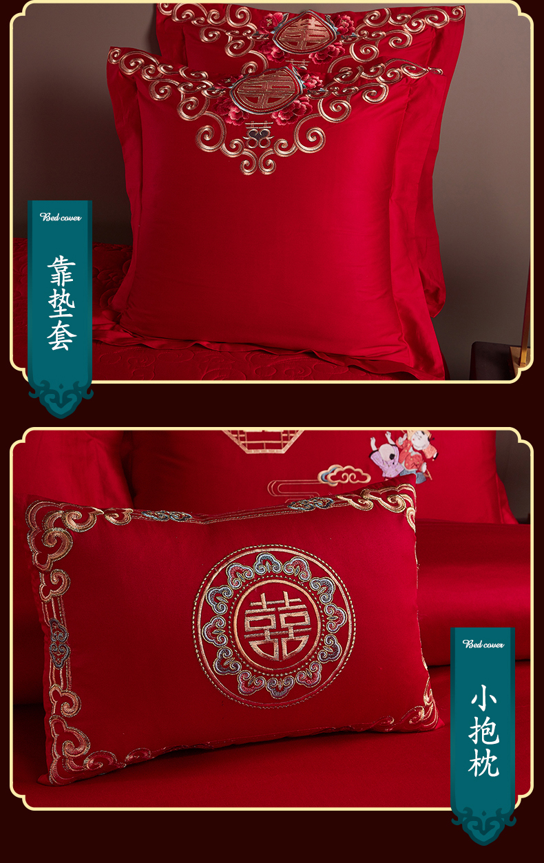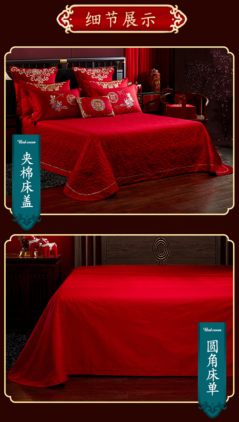 (总)东方合美(原:皇家传奇) 2025新款全棉纯棉新中式刺绣婚庆多件套-爱你,爱你-红,爱你-金