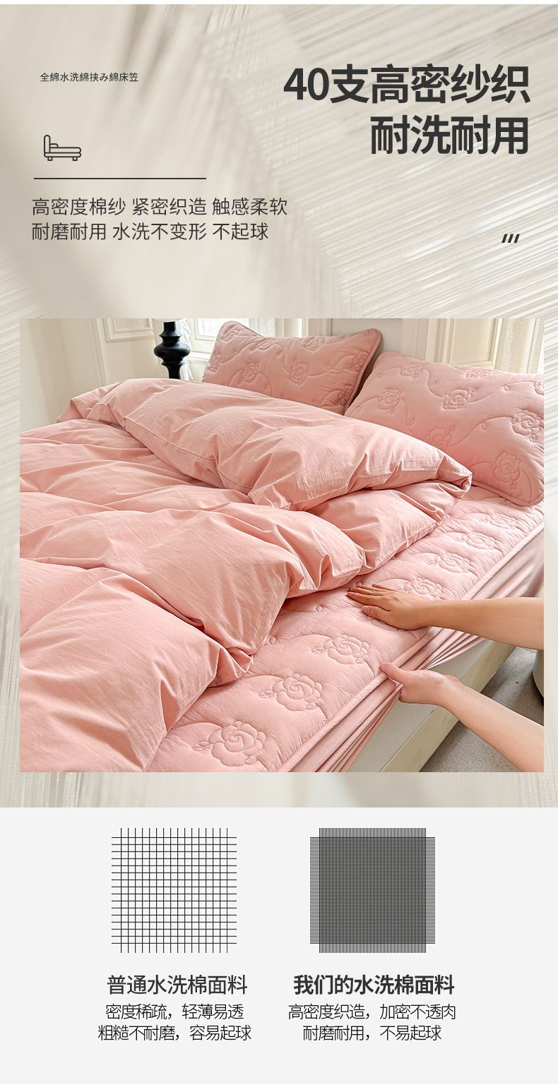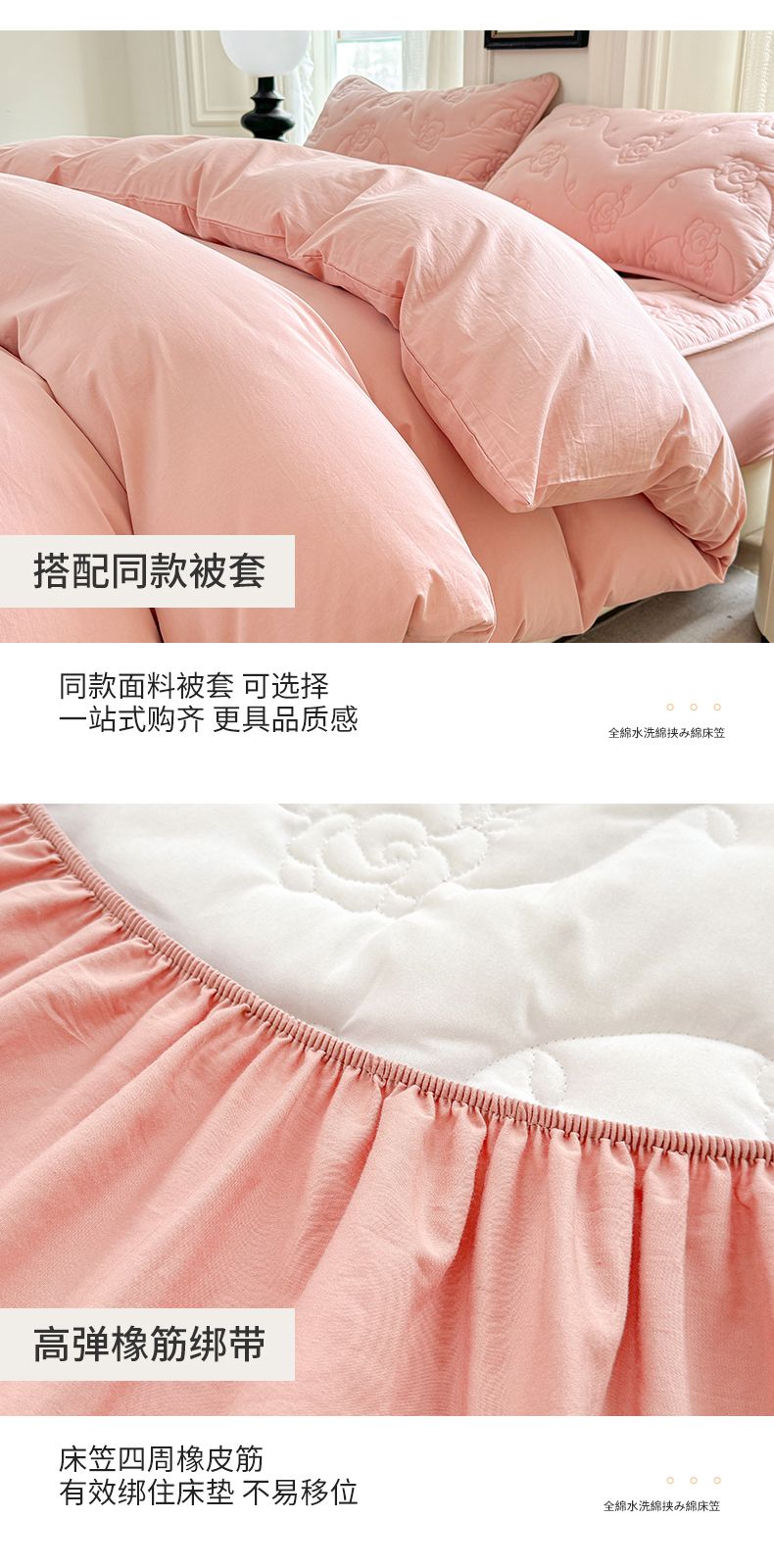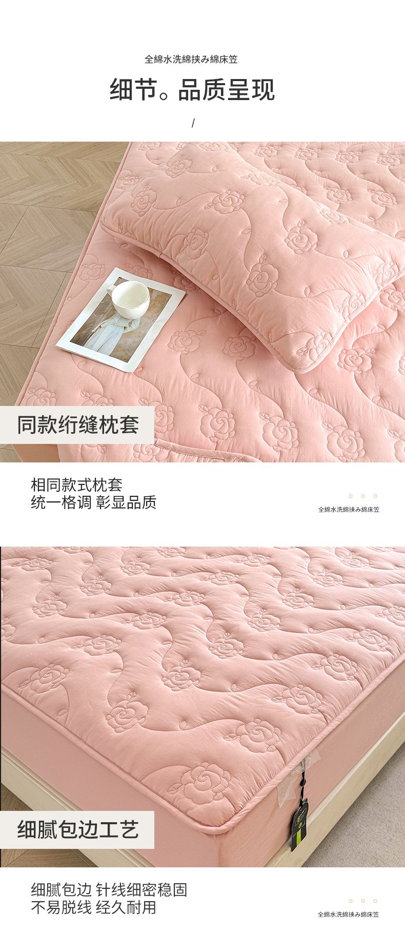 • 91家纺网 家纺一手货源 找家纺 3C 2024新款全棉水洗棉夹棉玫瑰床笠-花语系列 花语 轻柔粉