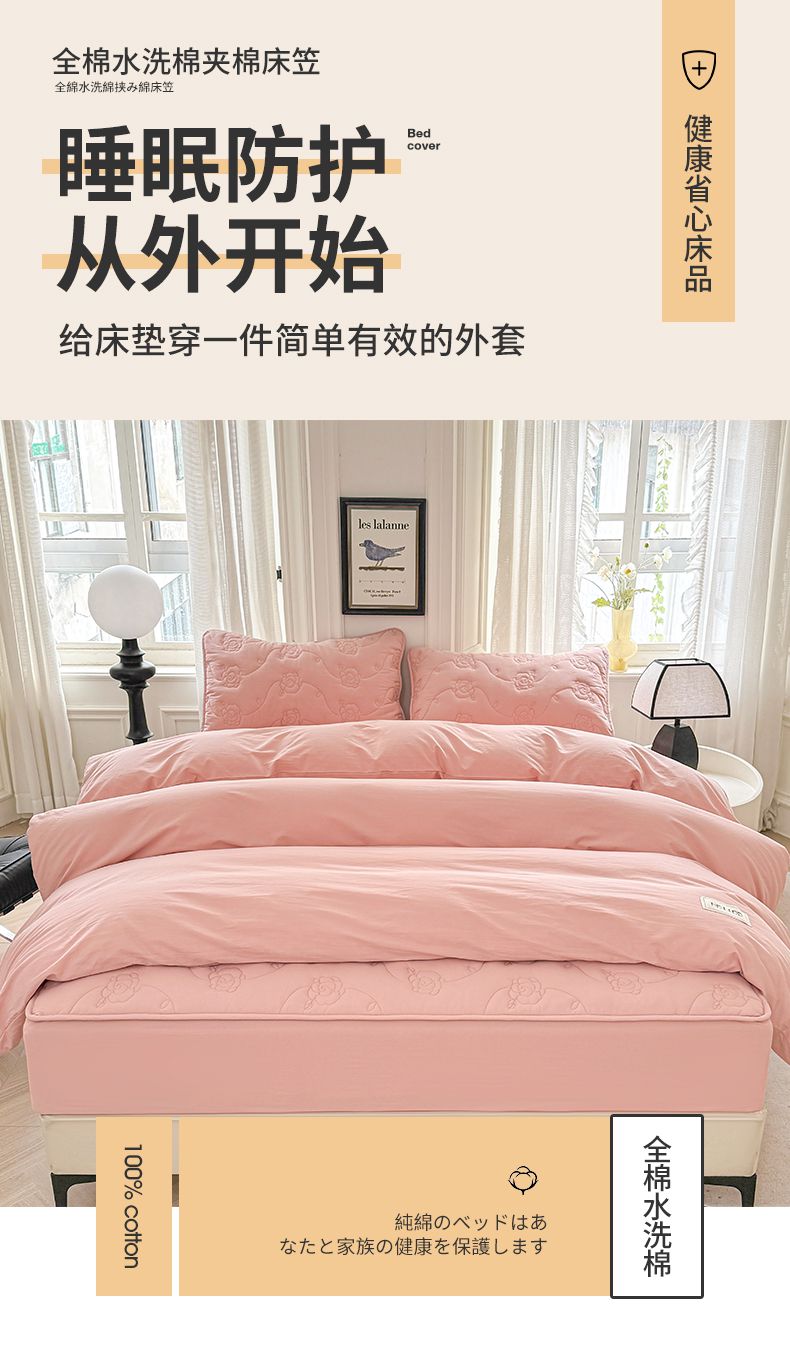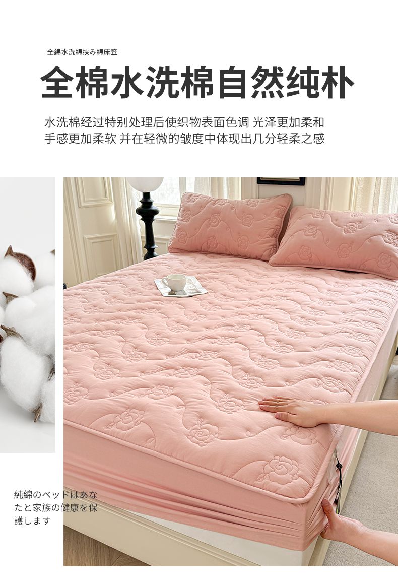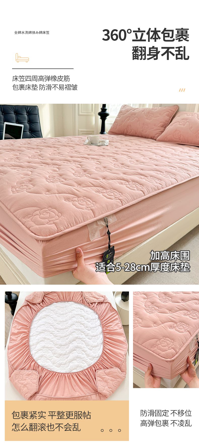 • 91家纺网 家纺一手货源 找家纺 3C 2024新款全棉水洗棉夹棉玫瑰床笠-花语系列 花语 轻柔粉