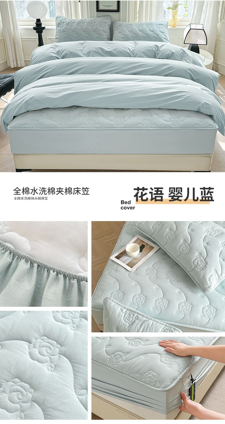 (总)3C 2025新款全棉水洗棉刺绣夹棉床笠,漫生活 豆沙粉,漫生活 简意灰 ,漫生活 卡其,漫生活 云朵白,组合图