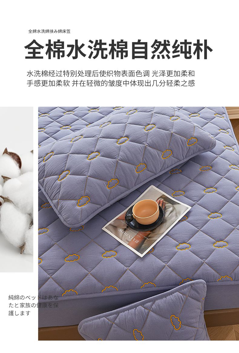 • 91家纺网 家纺一手货源 找家纺 3C 2024新款云朵全棉水洗棉床笠 云朵 蓝灰