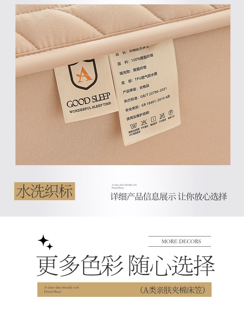 (总)3C 2025新款A类时尚格防水隔脏床笠,时尚格-海洋蓝,时尚格-奶油白,时尚格-嫩粉色,时尚格-浅卡其,时尚格-云雾灰,组合图
