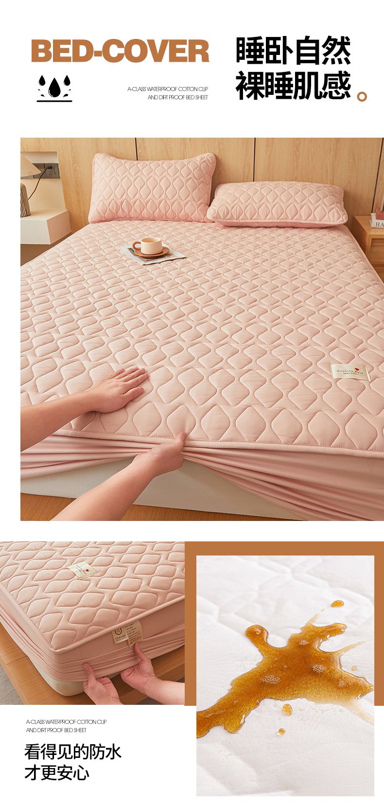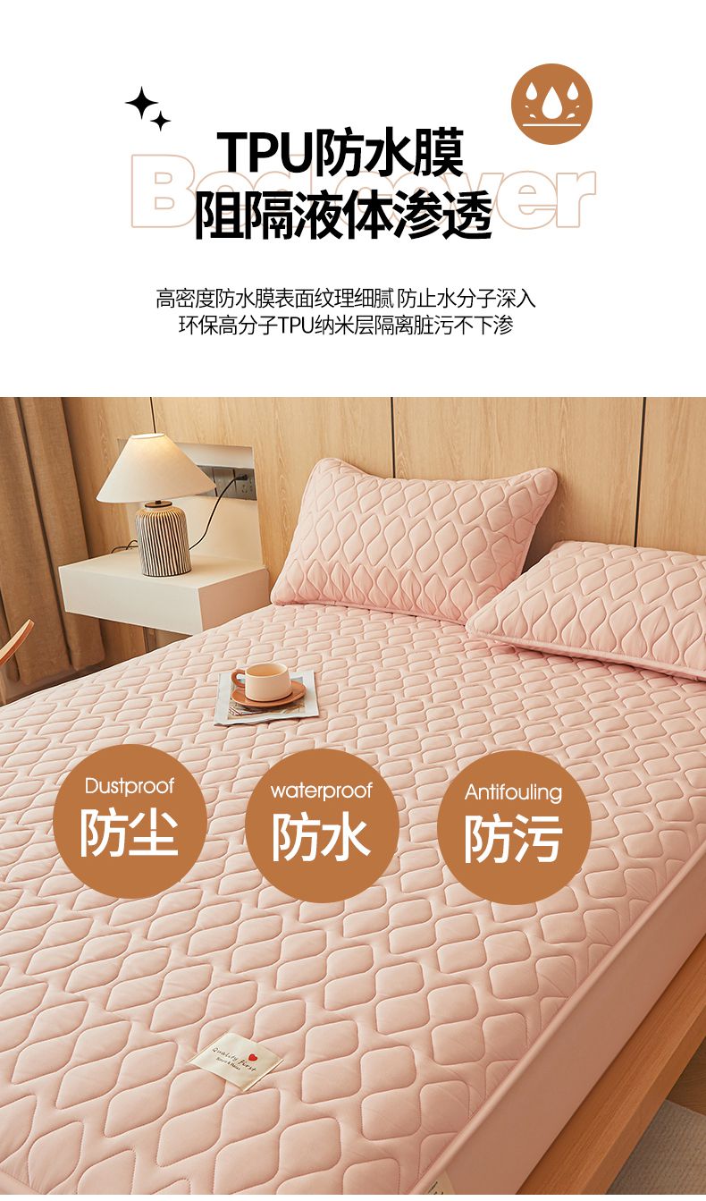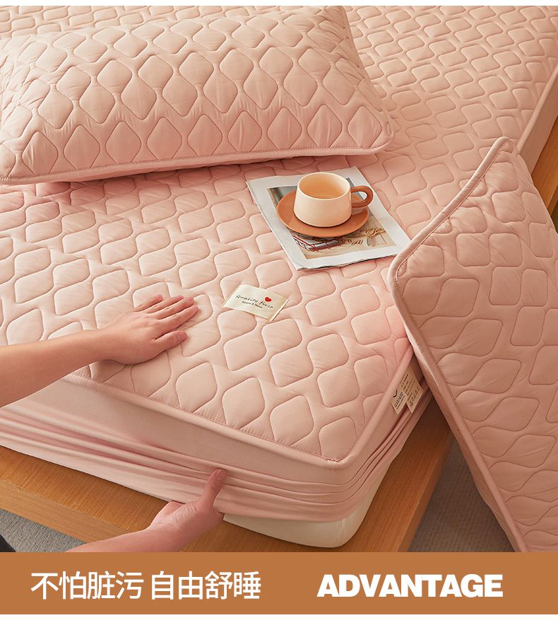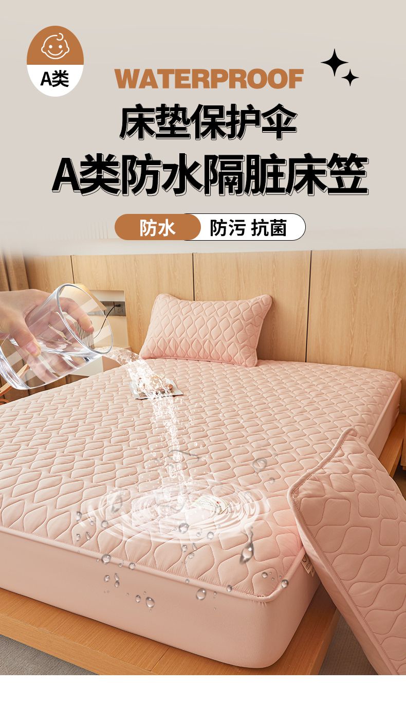 3C 2025新款A类菱形格防水隔脏床笠-卡诺 卡诺-柔粉
