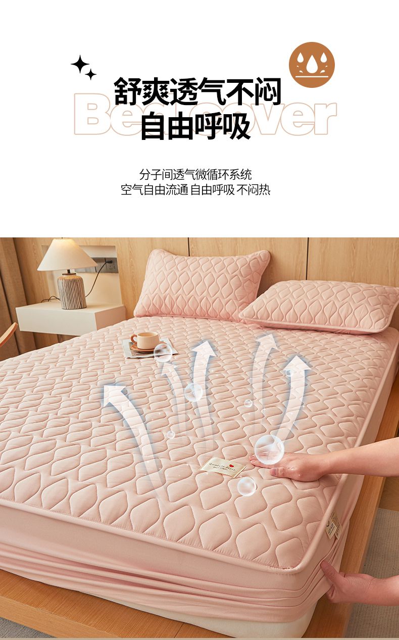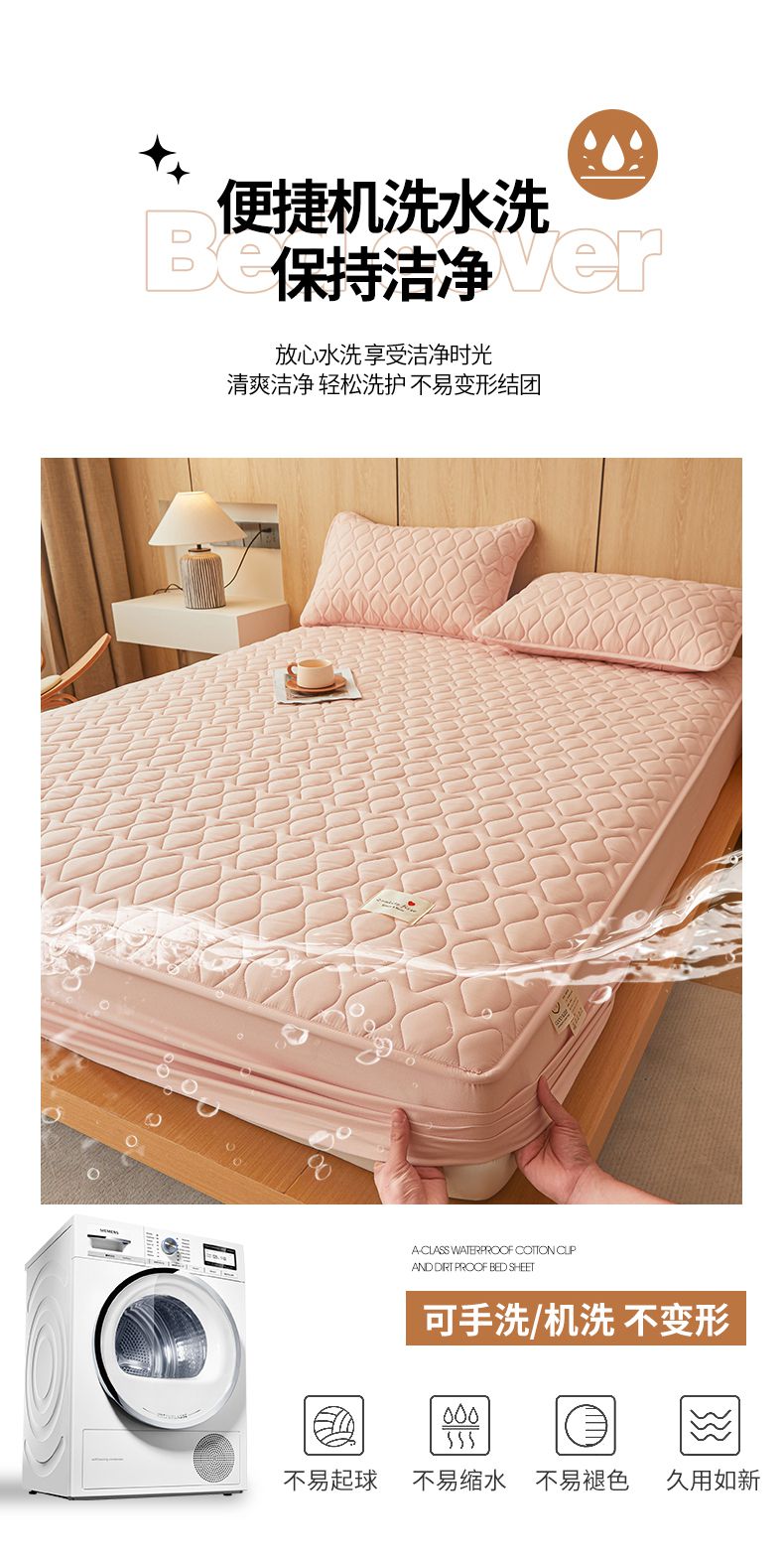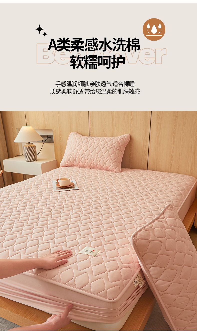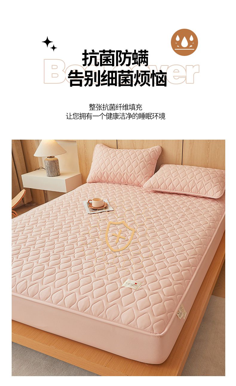 3C 2025新款A类菱形格防水隔脏床笠-卡诺 卡诺-柔粉