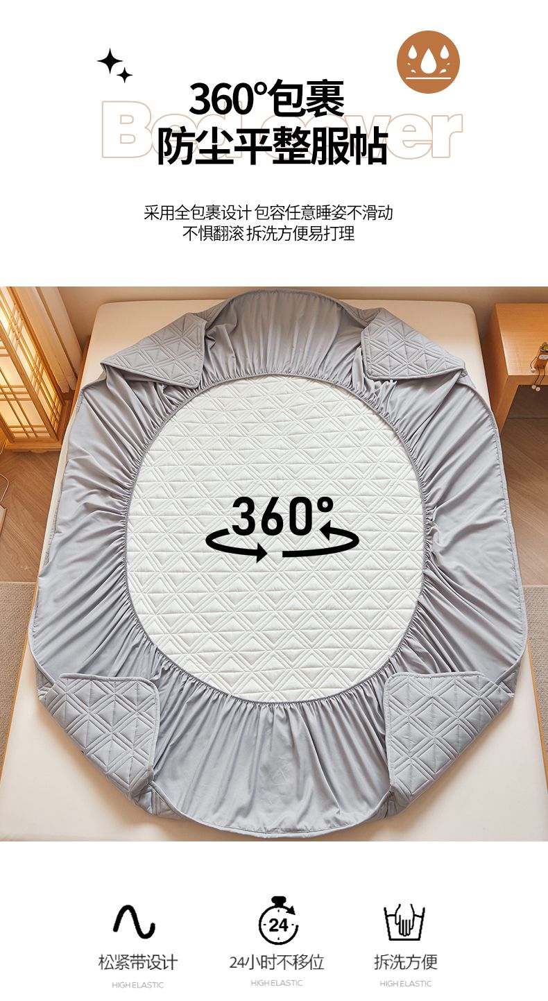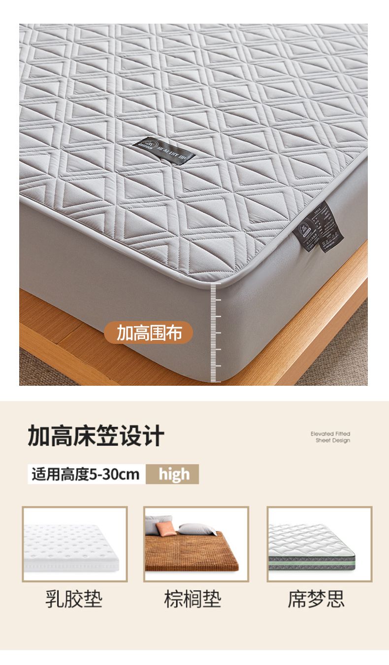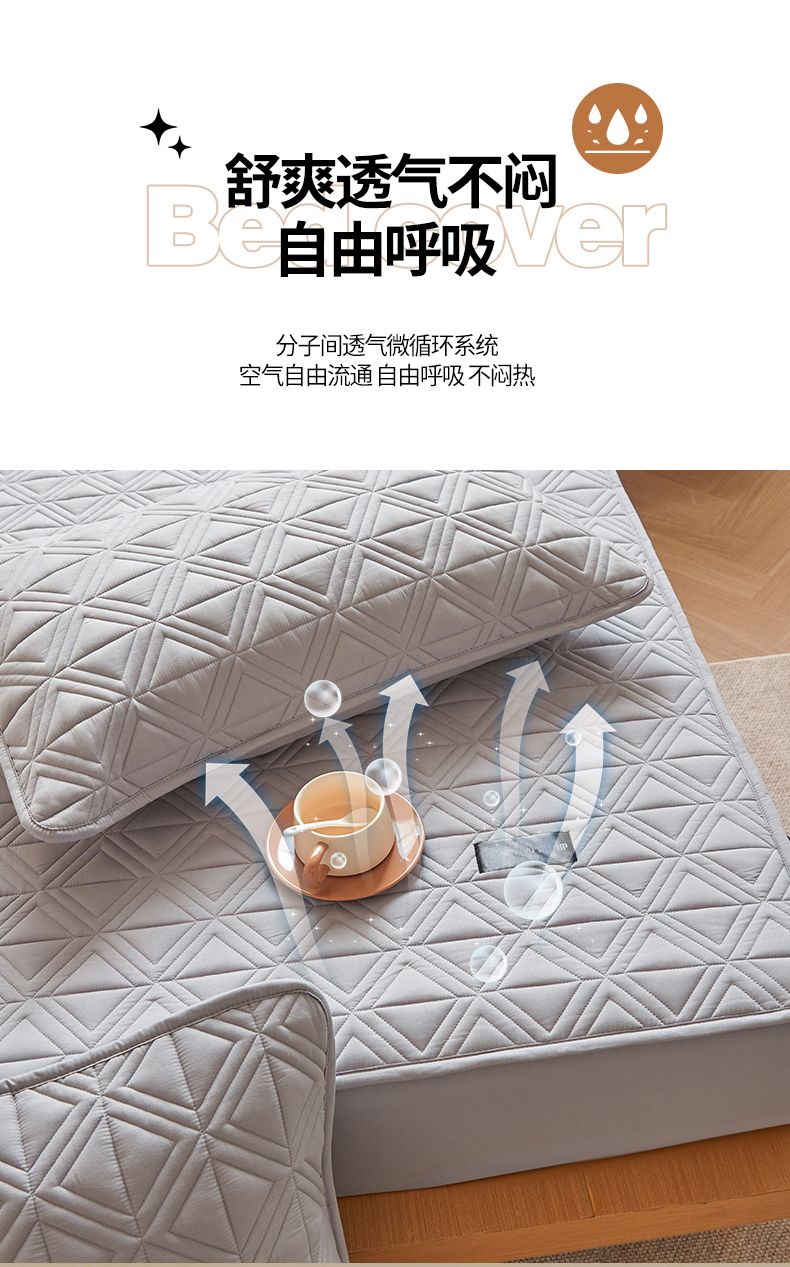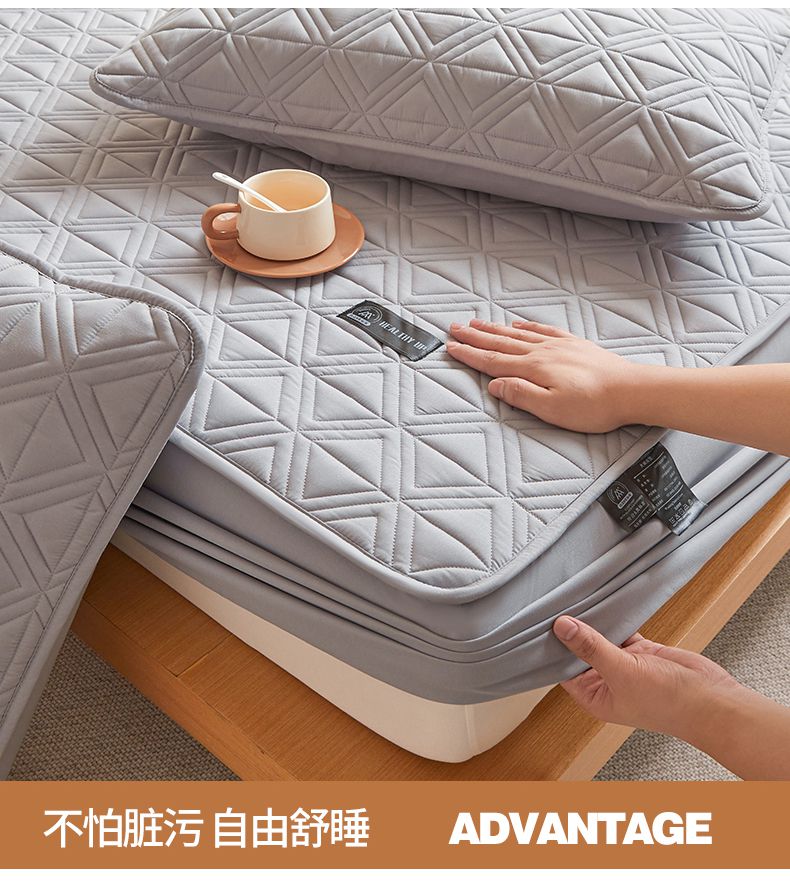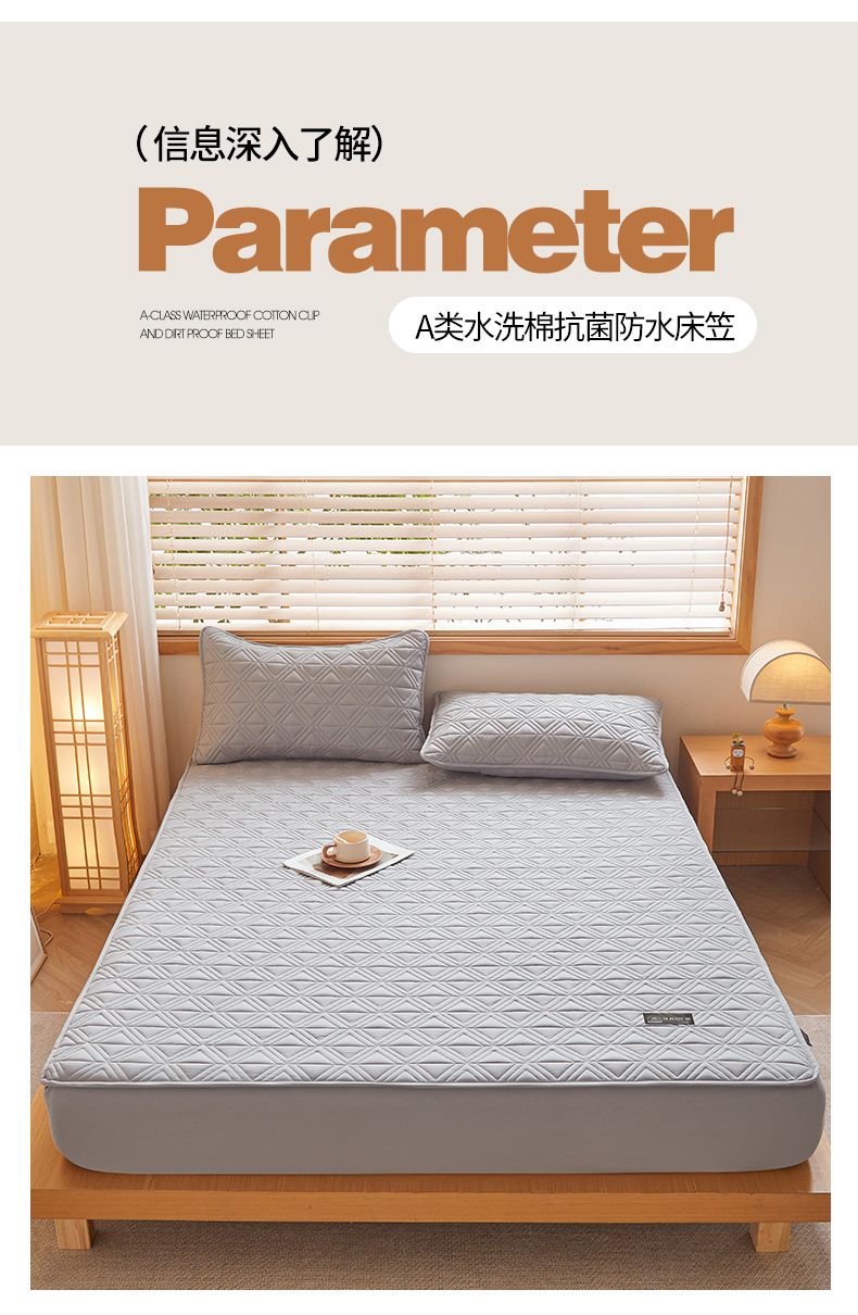 • 91家纺网 家纺一手货源 找家纺 3C 2025新款A类三角格防水隔脏床笠 三角格-云雾灰