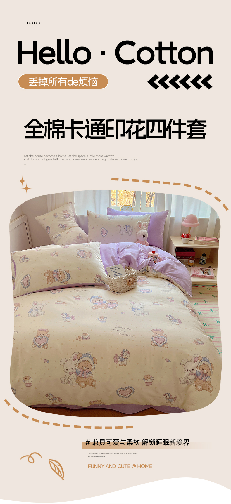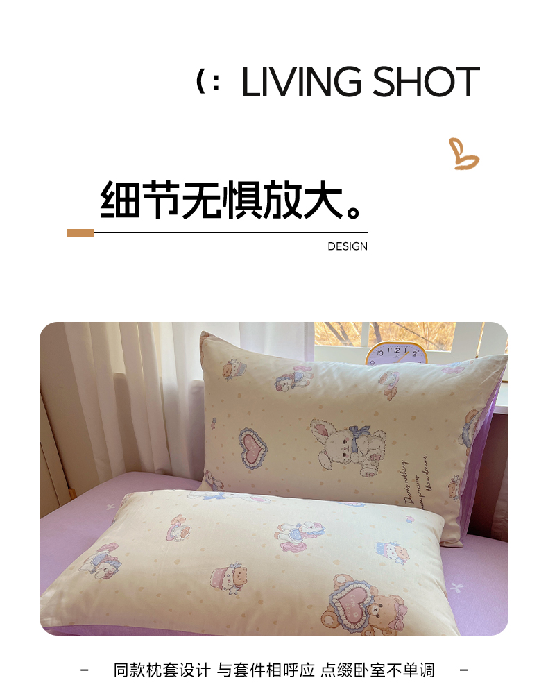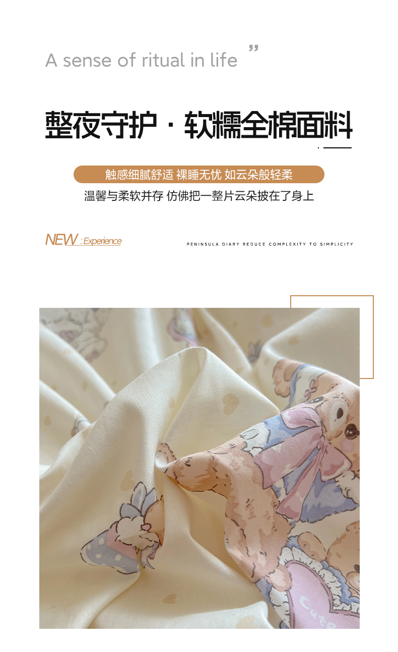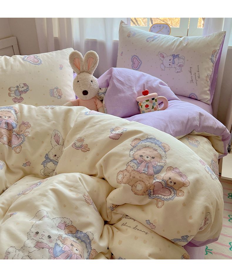 商品名称:雅居纺家纺 2025新款全棉小清新四件套 椰果小熊