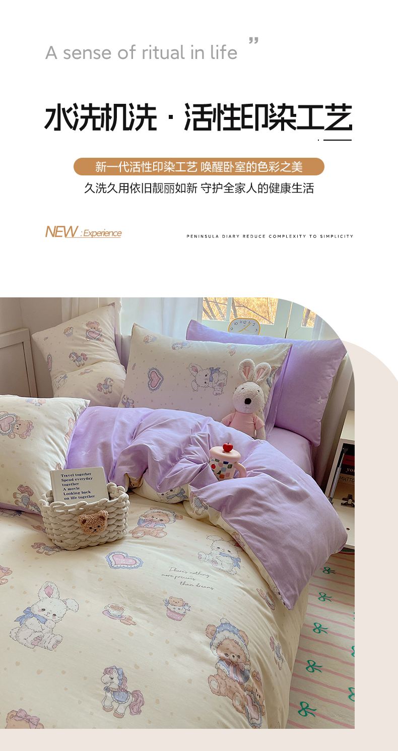 (总)雅居纺家纺 2026新款全棉小清新印花四件套,HI小狗,暴富,草莓蓝花,粉色熊熊,红红火火,简笔画小兔,蓝条花朵兔,绿色小兔,森林乐园,绅士快乐狗,贪睡猫猫,贪玩家族,贪玩小兔兔,祥瑞,小黑猫咪,幸福花朵,幸福兔-蓝,熊熊小汽车,紫色千鸟格