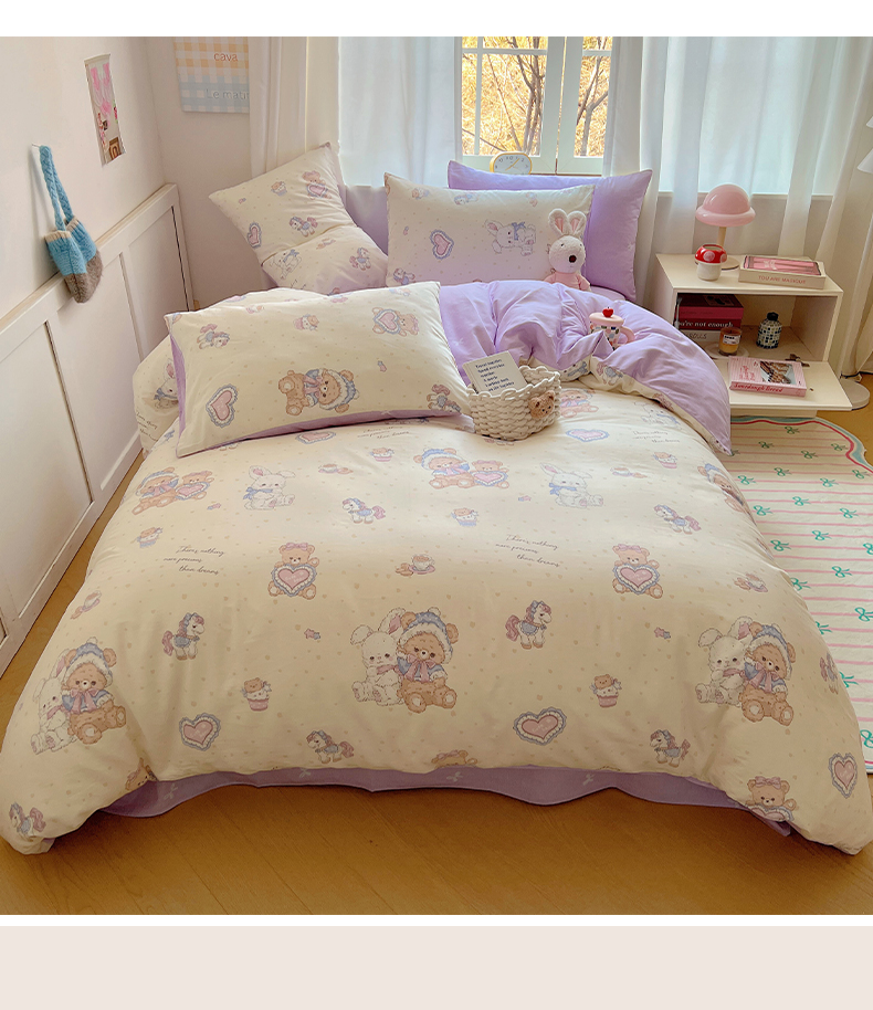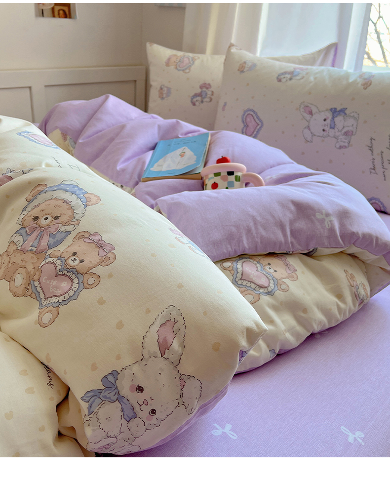 雅居纺家纺 2025新款全棉小清新四件套 椰果小熊