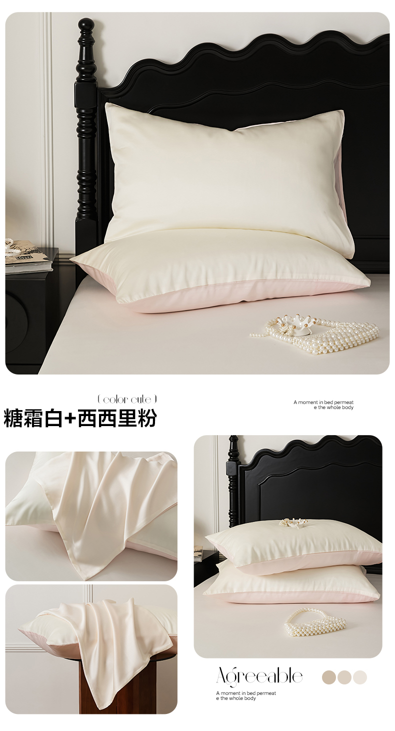 商品名称:EH家居 2025春夏天丝纯色单枕套 糖霜白+西西里粉