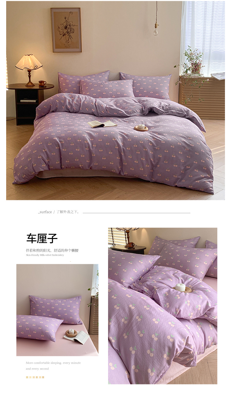 当前位置: 91家纺网 > 商品网购 > 床品套件 > 四件套 > 全棉普通四件套 > 2025新款A类母婴级有氧全棉纯棉双层纱纯棉印花四件套 场景一 车厘子