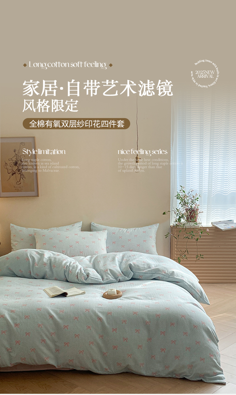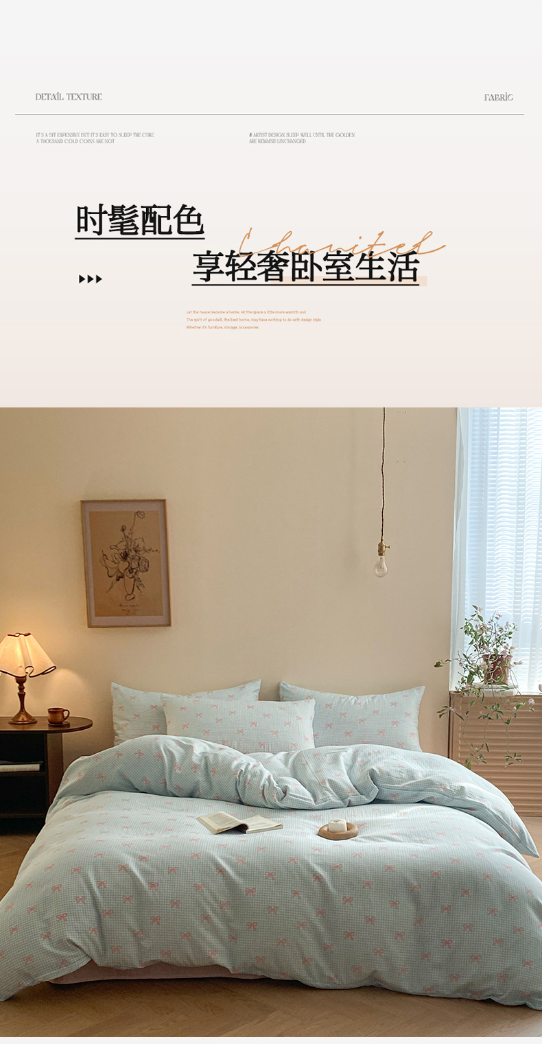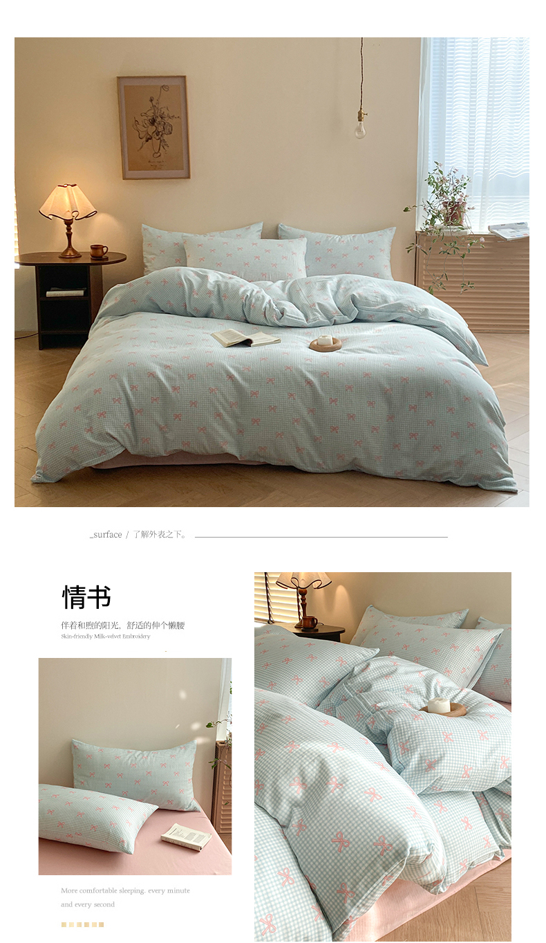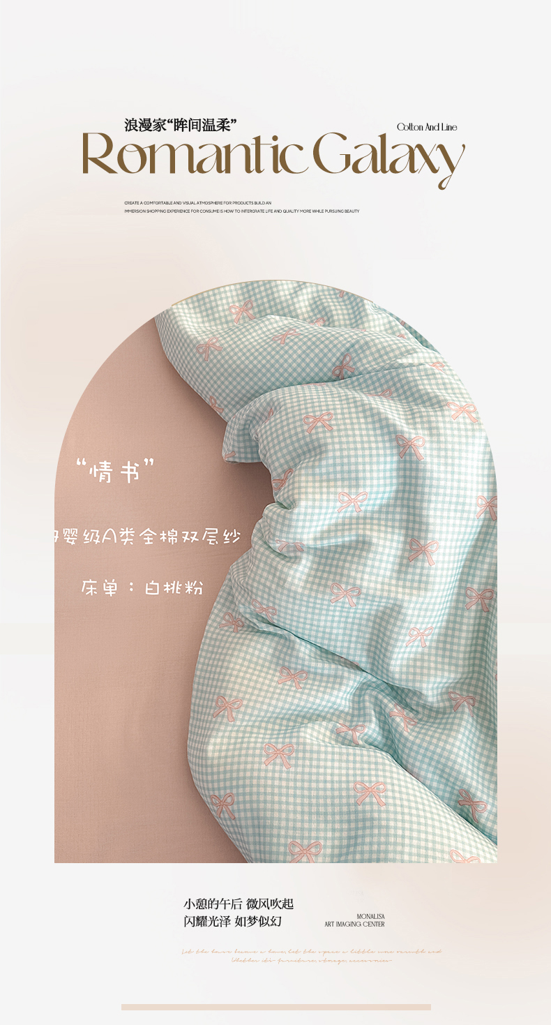 当前位置: 91家纺网 > 商品网购 > 床品套件 > 四件套 > 全棉普通四件套 > 2025新款A类母婴级有氧全棉纯棉双层纱纯棉印花四件套 场景一 情书
