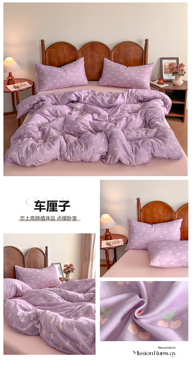 当前位置: 91家纺网 > 商品网购 > 床品套件 > 四件套 > 全棉普通四件套 > 2025新款A类母婴级有氧全棉纯棉双层纱纯棉印花四件套 场景二 车厘子