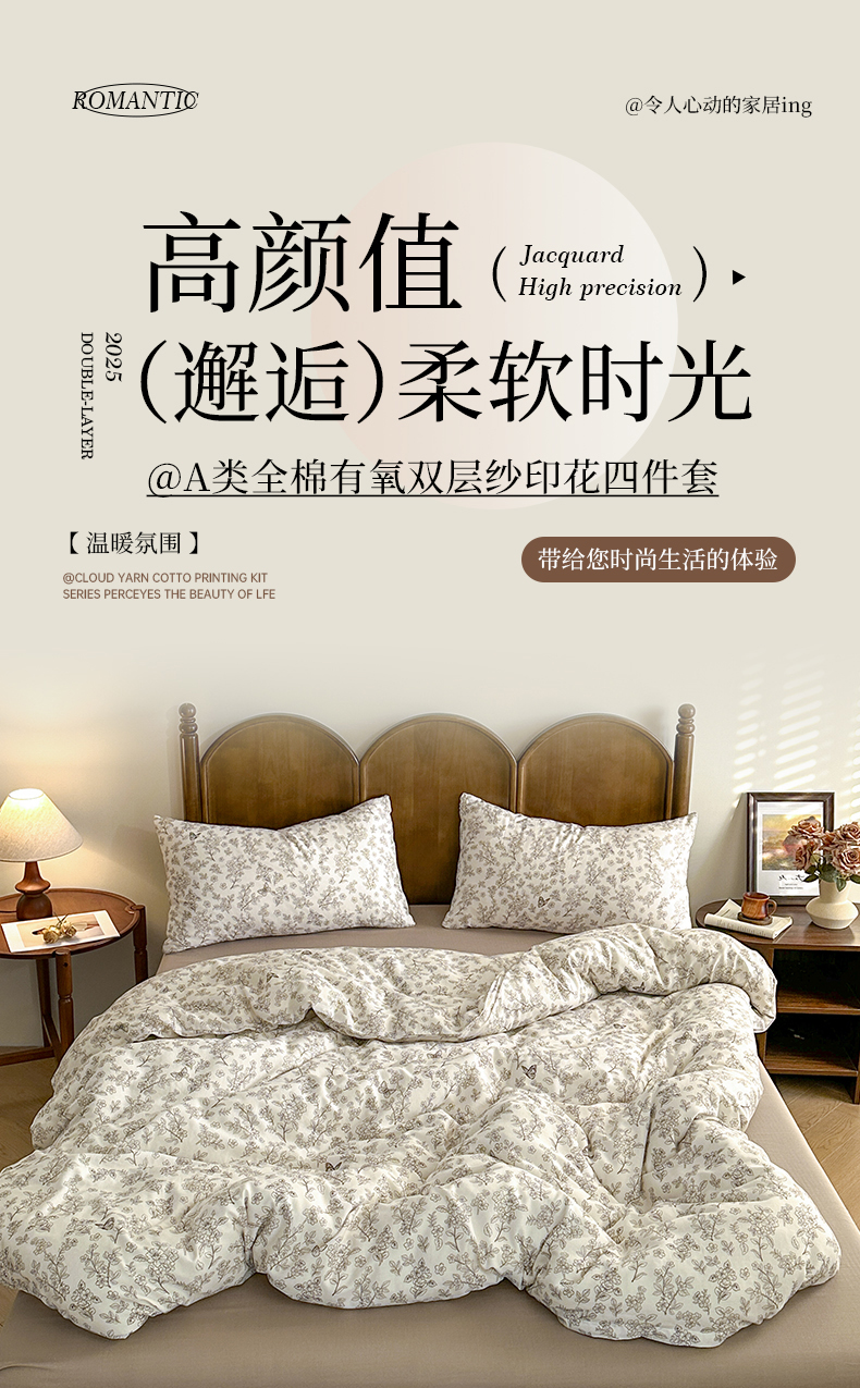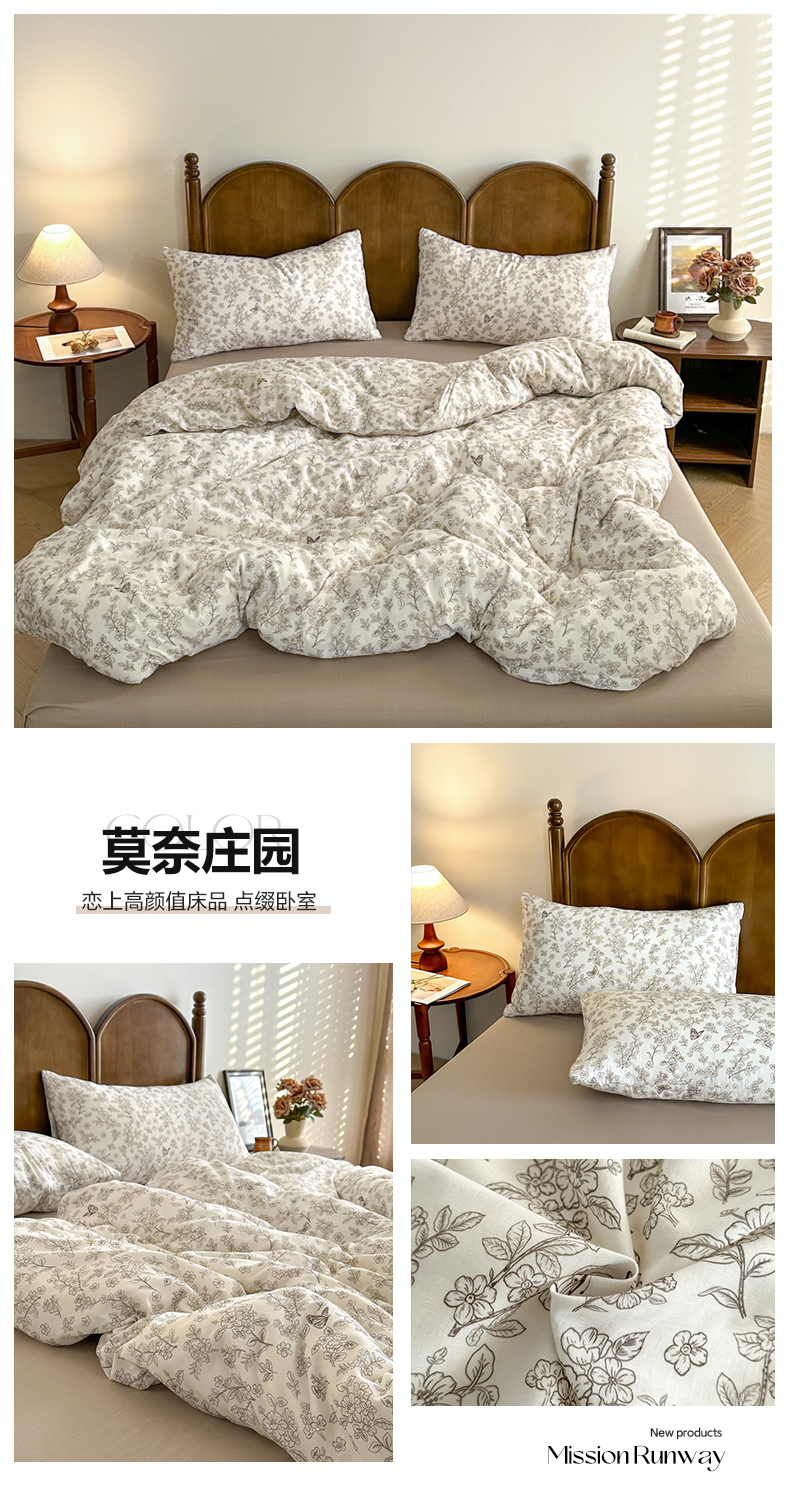 当前位置: 91家纺网 > 商品网购 > 床品套件 > 四件套 > 全棉普通四件套 > 2025新款A类母婴级有氧全棉纯棉双层纱纯棉印花四件套 场景二 莫奈庄园