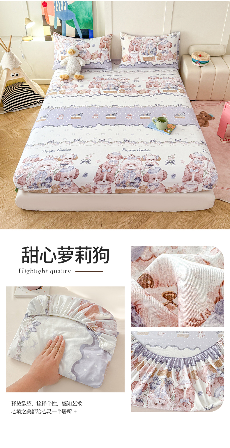 • 91家纺网 家纺一手货源 找家纺 温眠 2025新款A类亲肤水洗棉可爱卡通印花床笠 甜心萝莉狗