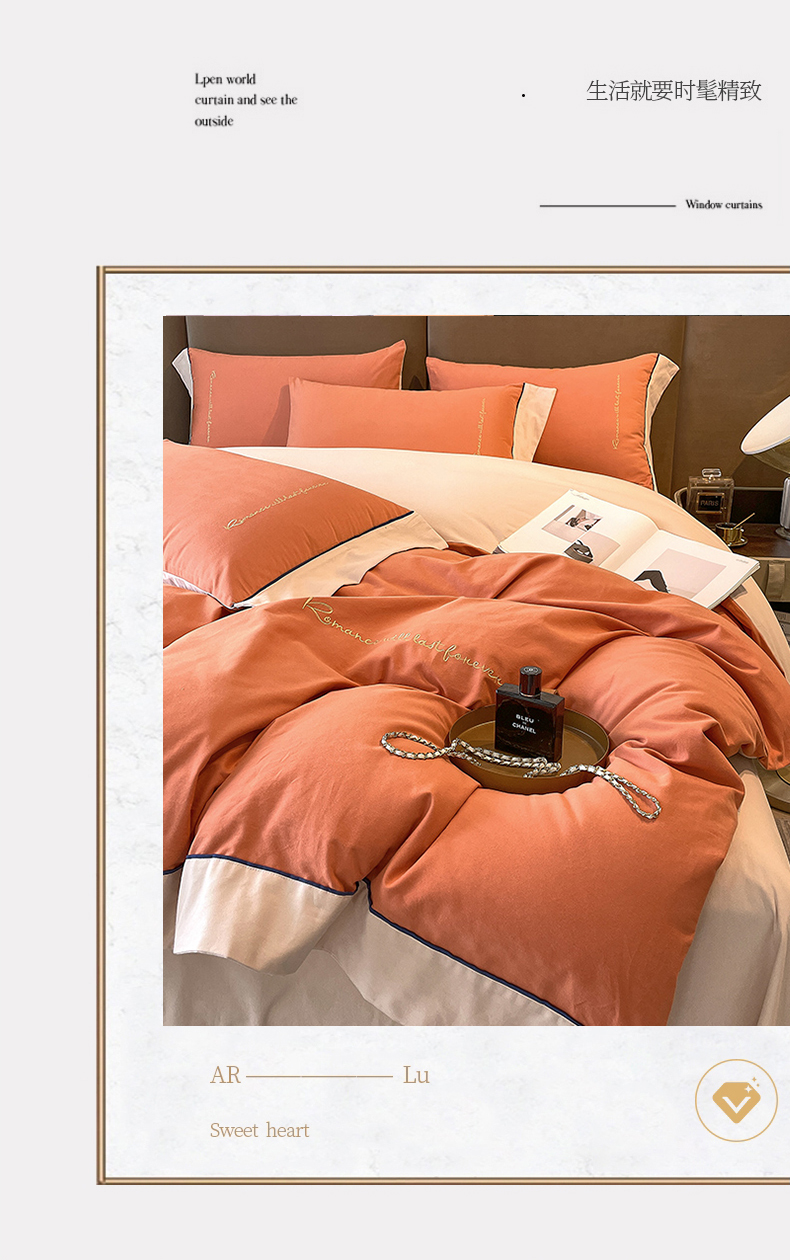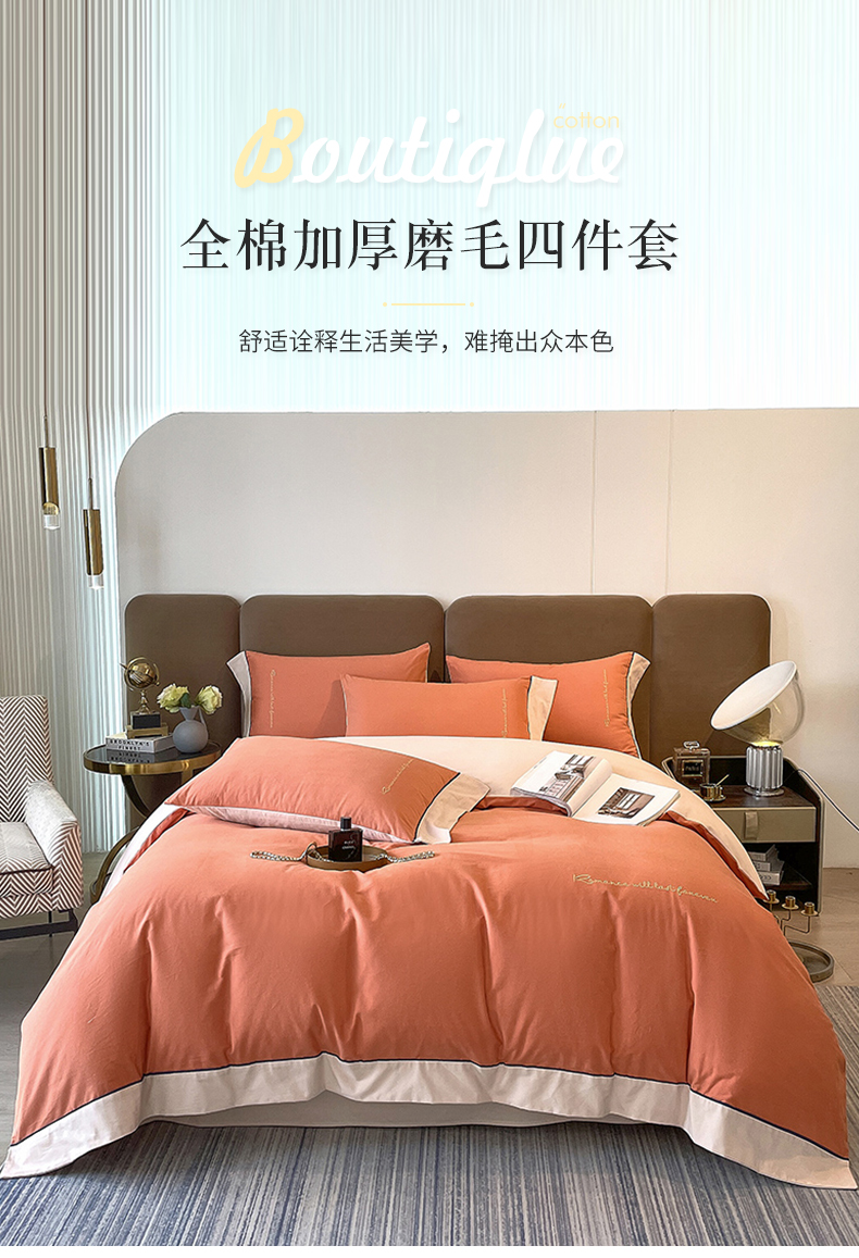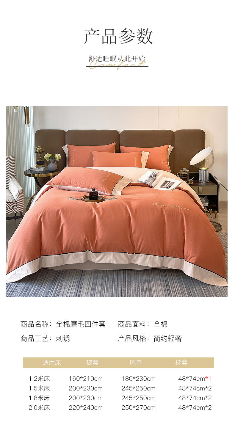 当前位置: 91家纺网 > 商品网购 > 床品套件 > 四件套 > 全棉普通四件套 > 买家秀 爆款花色不断货)A类母婴级纯棉磨毛四件套磨毛刺绣四件套纯棉四件套全棉磨毛四件套纯色双拼四件套 帛-桦茶橘