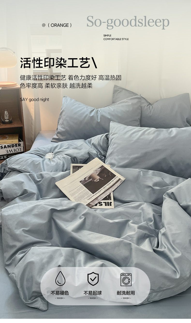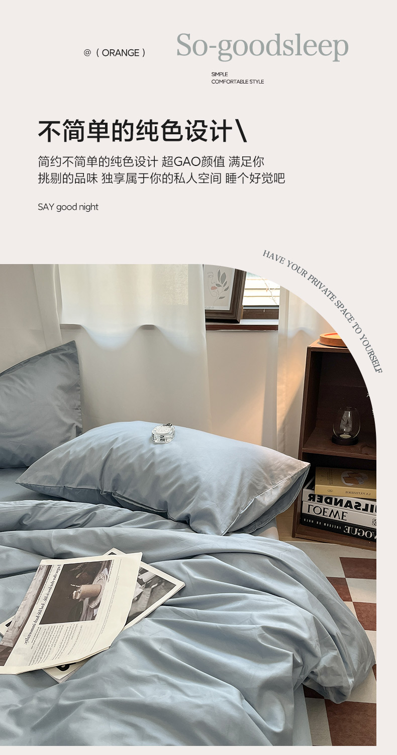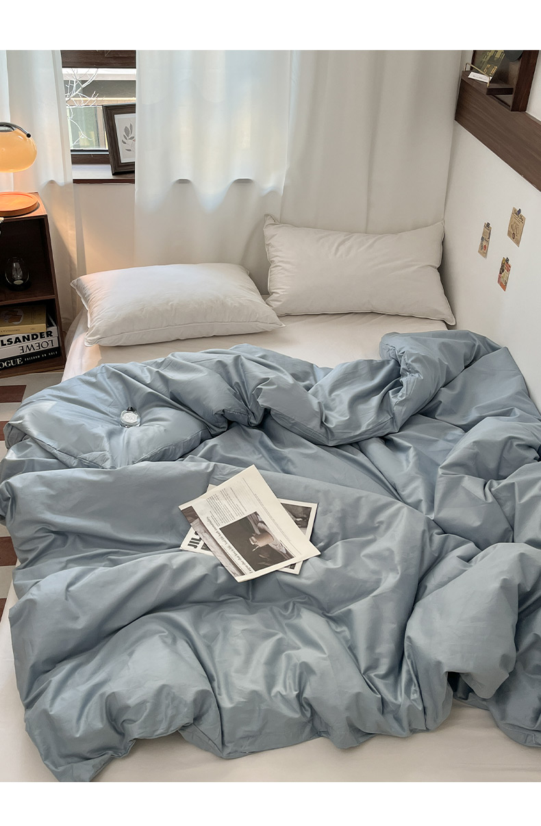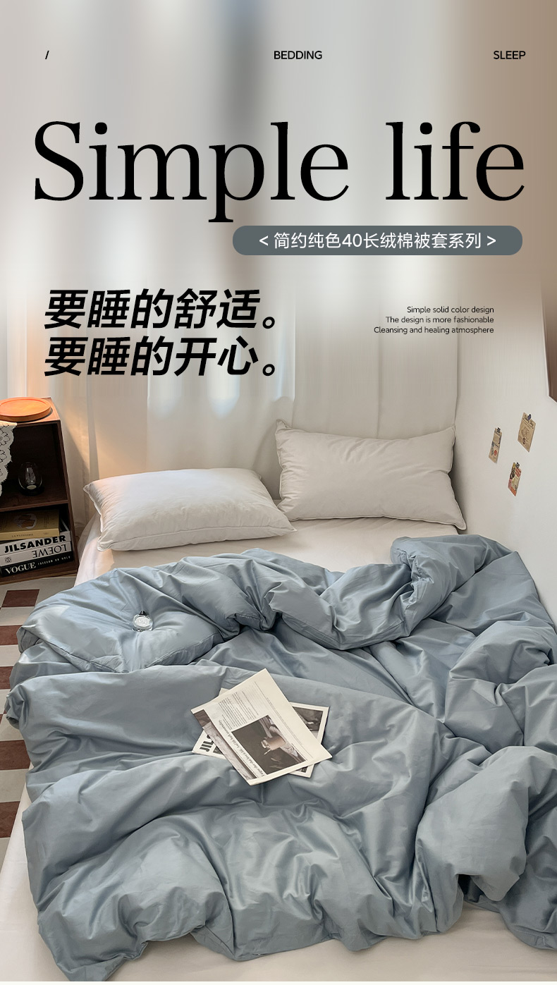 商品名称:2025新款40长绒棉ins美拉德色系纯色全棉单品四件套床笠四件套系列--单被套 天空蓝