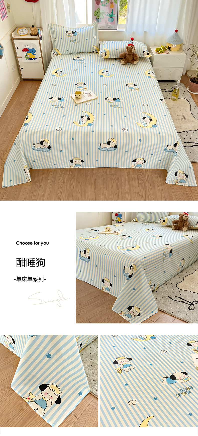 (总)铭成家纺 2025新款全棉印花学生单床笠系列,云韵时空,安睡宝,比星邦尼狗,宠咖时间,酣睡狗,华歌尔,可爱小咪,米拉,摩登熊宝,拿铁米,帕洛迪,普罗旺斯,甜酷莓莓,星星发夹狗
