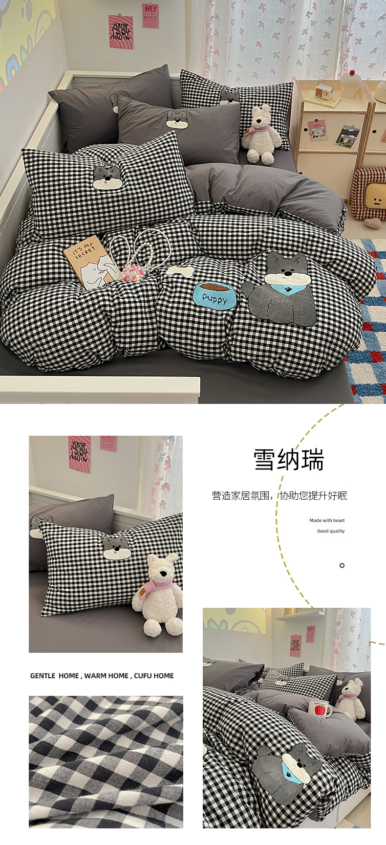商品名称:呗旺鹿 2025新款A类全棉色织水洗棉毛巾绣系列四件套 雪纳瑞