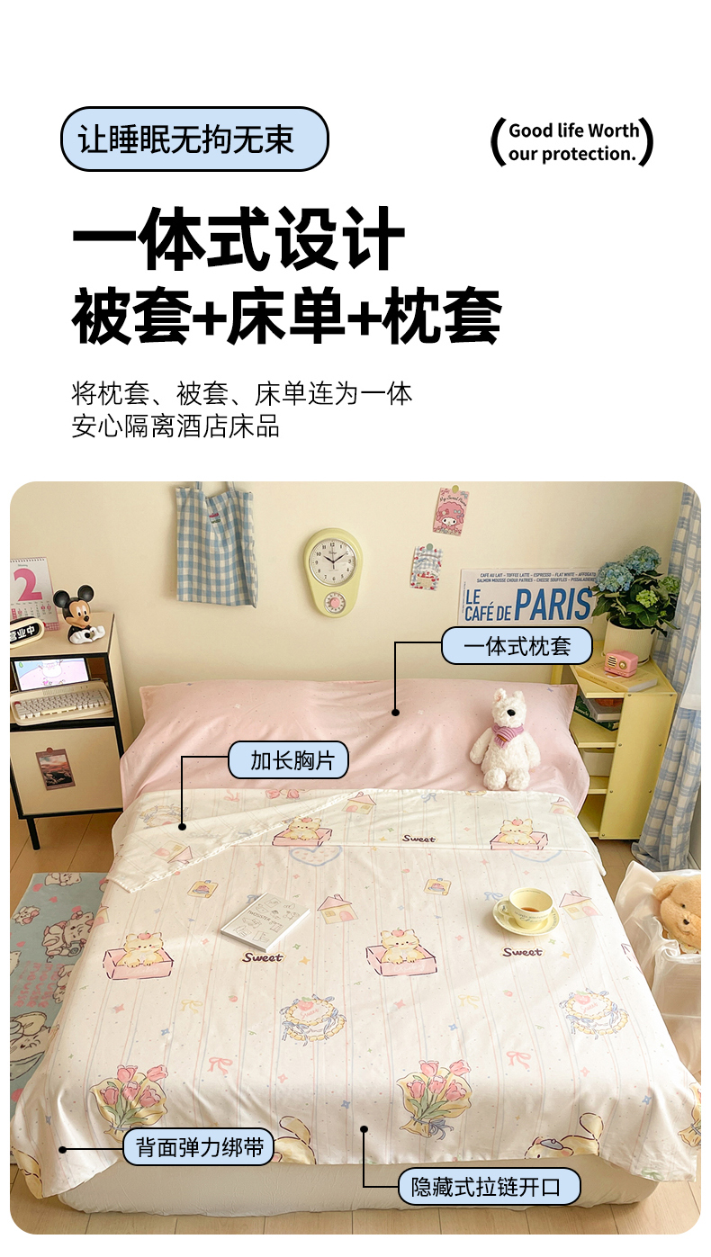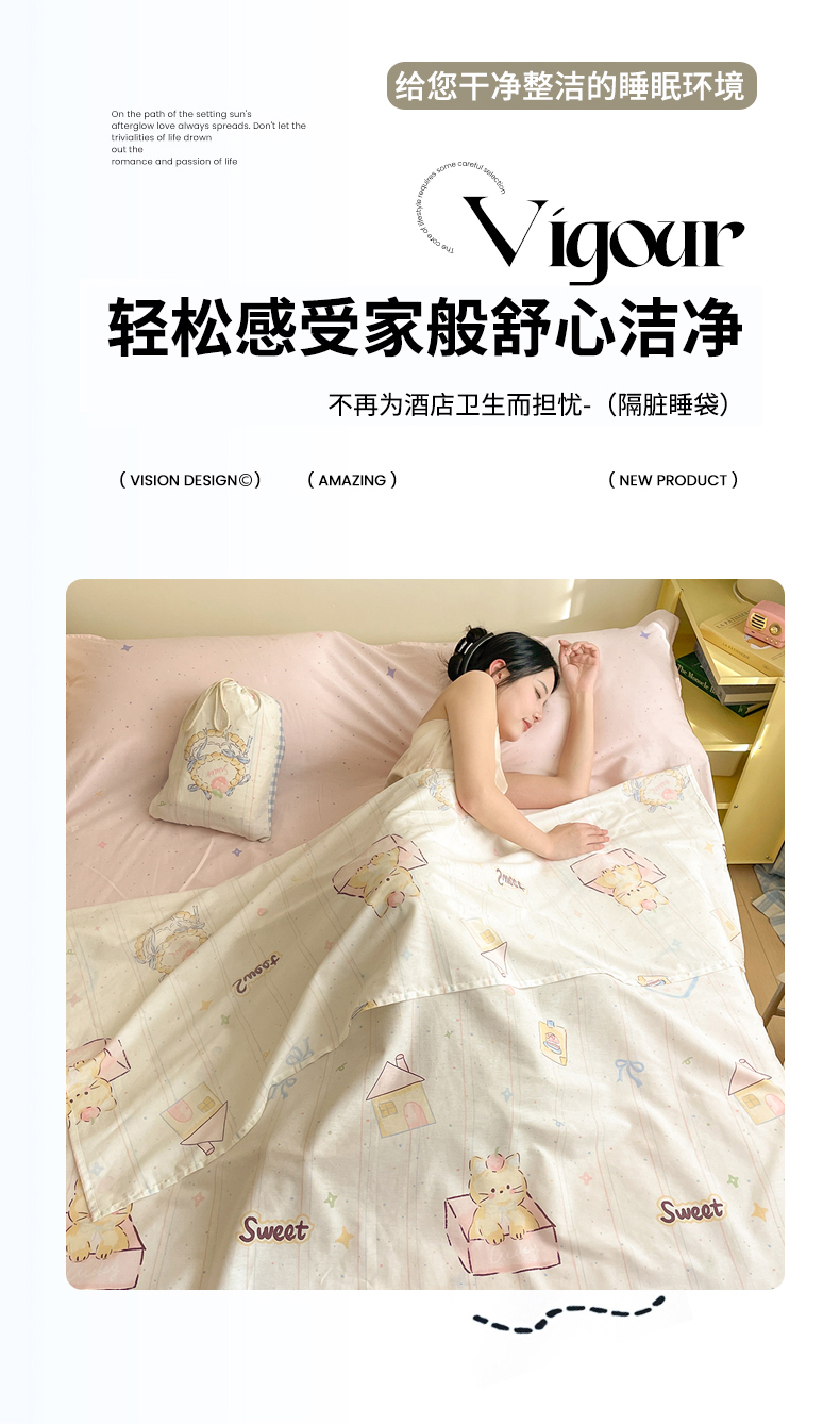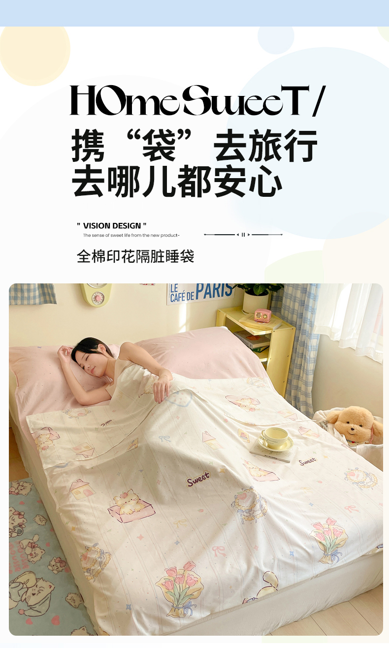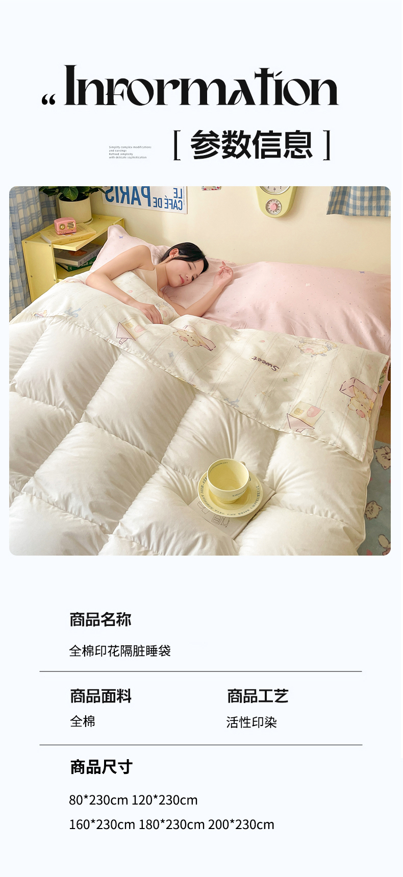 商品名称:Sweet dreams甜梦 2025新款全棉小清新卡通一体式旅行酒店睡袋 花花小象
