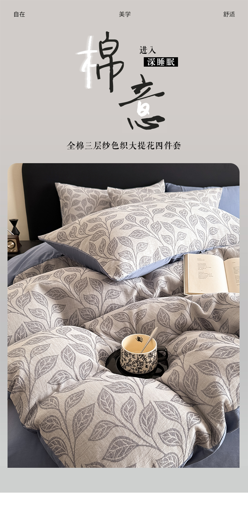 水云缦 2025新款水云缦全棉三层纱色织大提花四件套 锦棠-深蓝