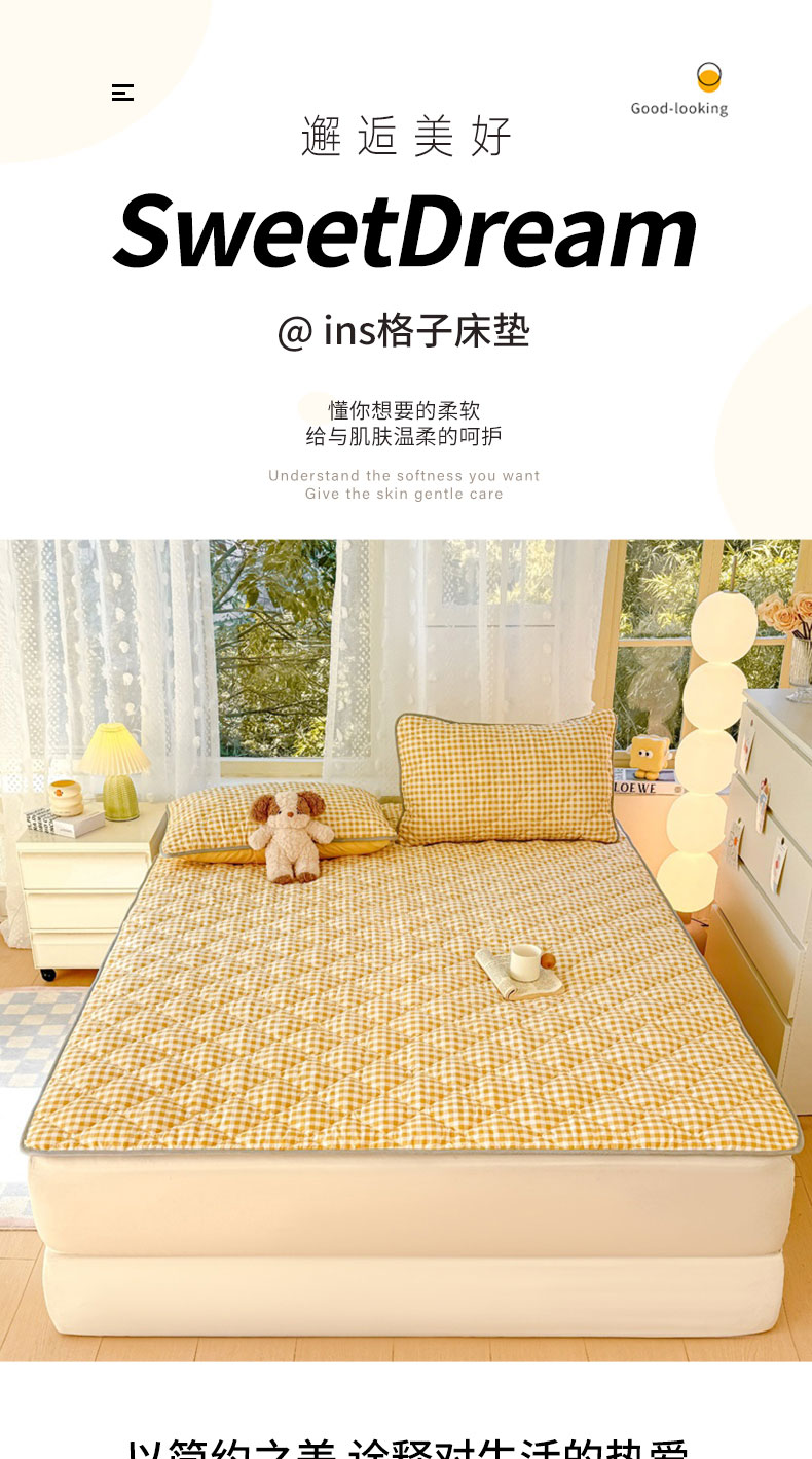 当前位置: 91家纺网 > 商品网购 > 床垫/床褥 > 普通床垫 > 麒东家纺 2025年新款ins春夏格子床垫 小黄格