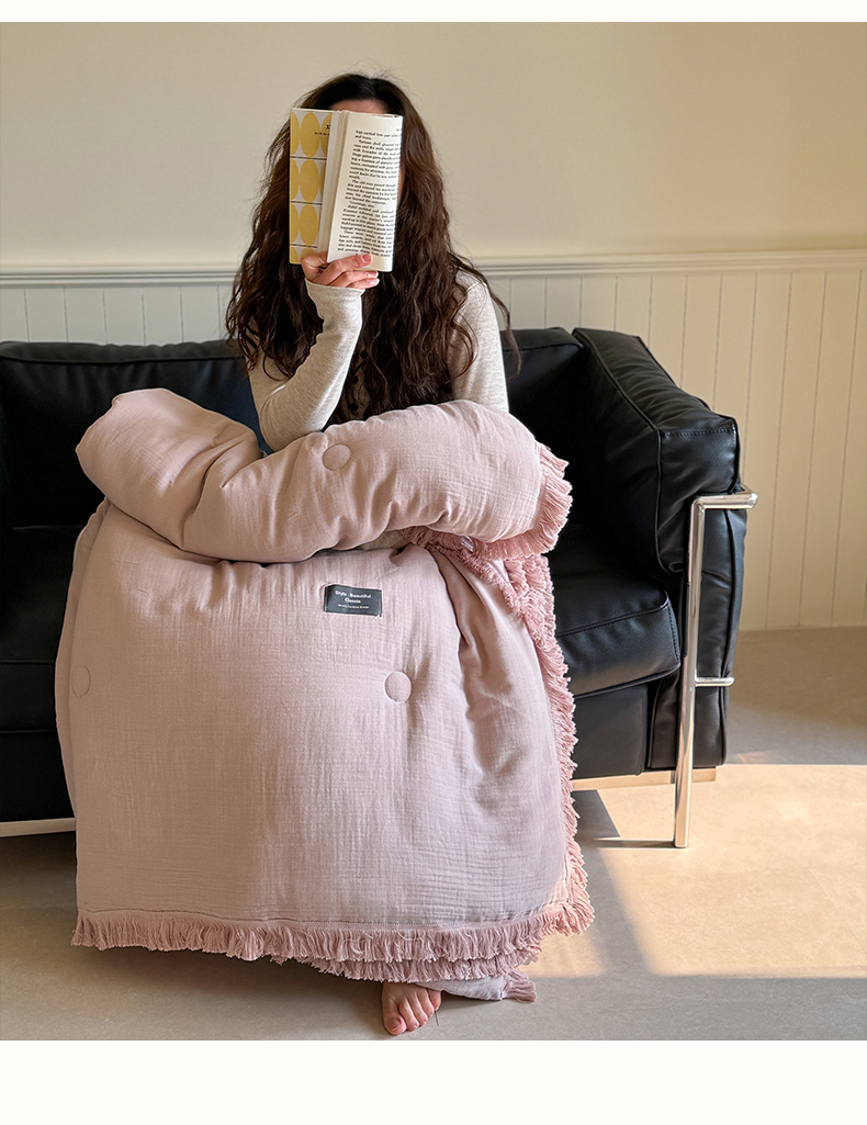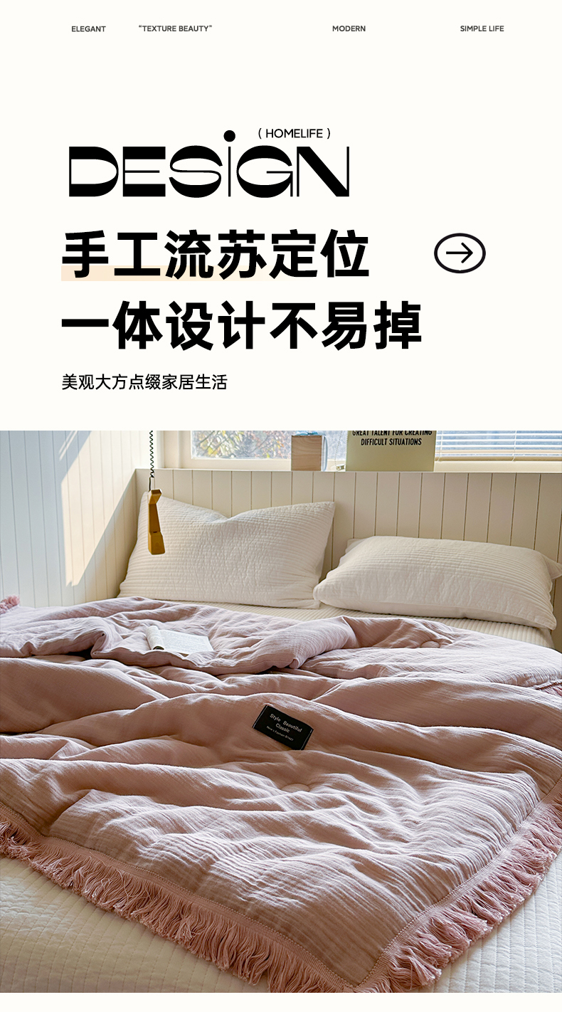 (总)暖生活 2025新款全棉四层皱皱纱流苏春秋被