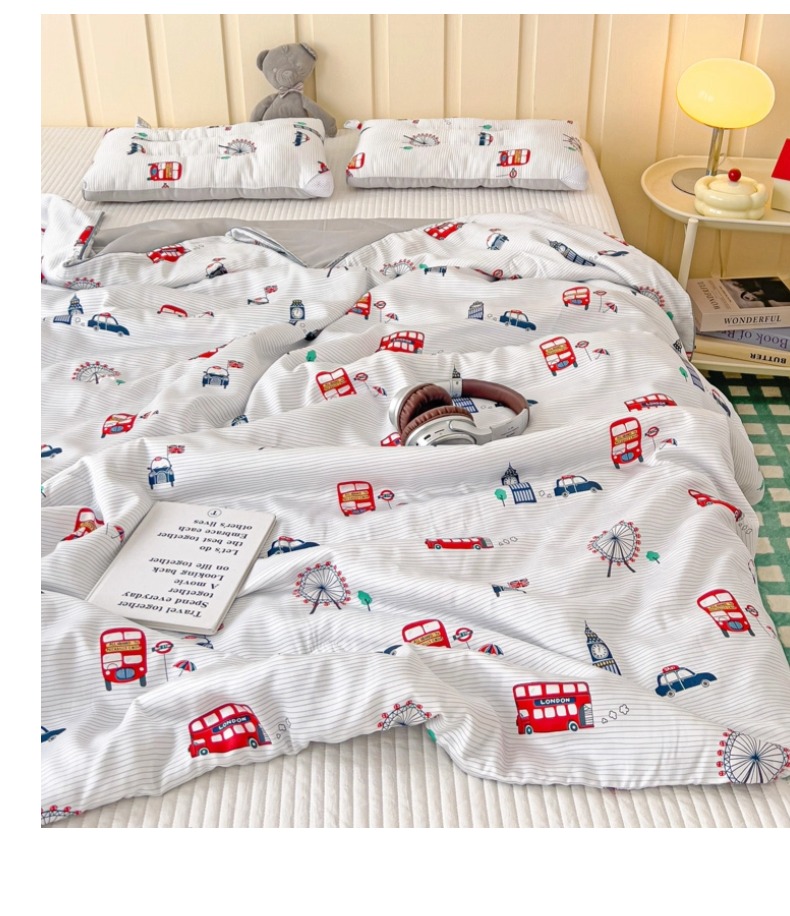 商品名称:十九色 2025新款50莱赛尔印花儿童夏被 伦敦巴士