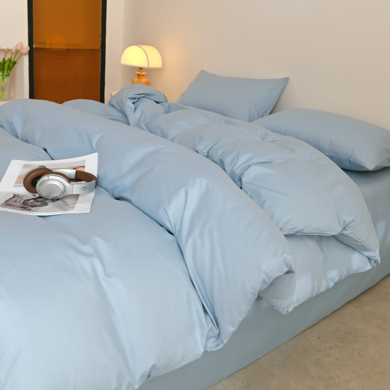 当前位置: 91家纺网 > 商品网购 > 床品套件 > 四件套 > 全棉普通四件套 > 泽西家纺2025新款A类全棉双拼纯色纯棉单被套 雾蓝