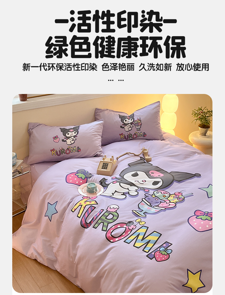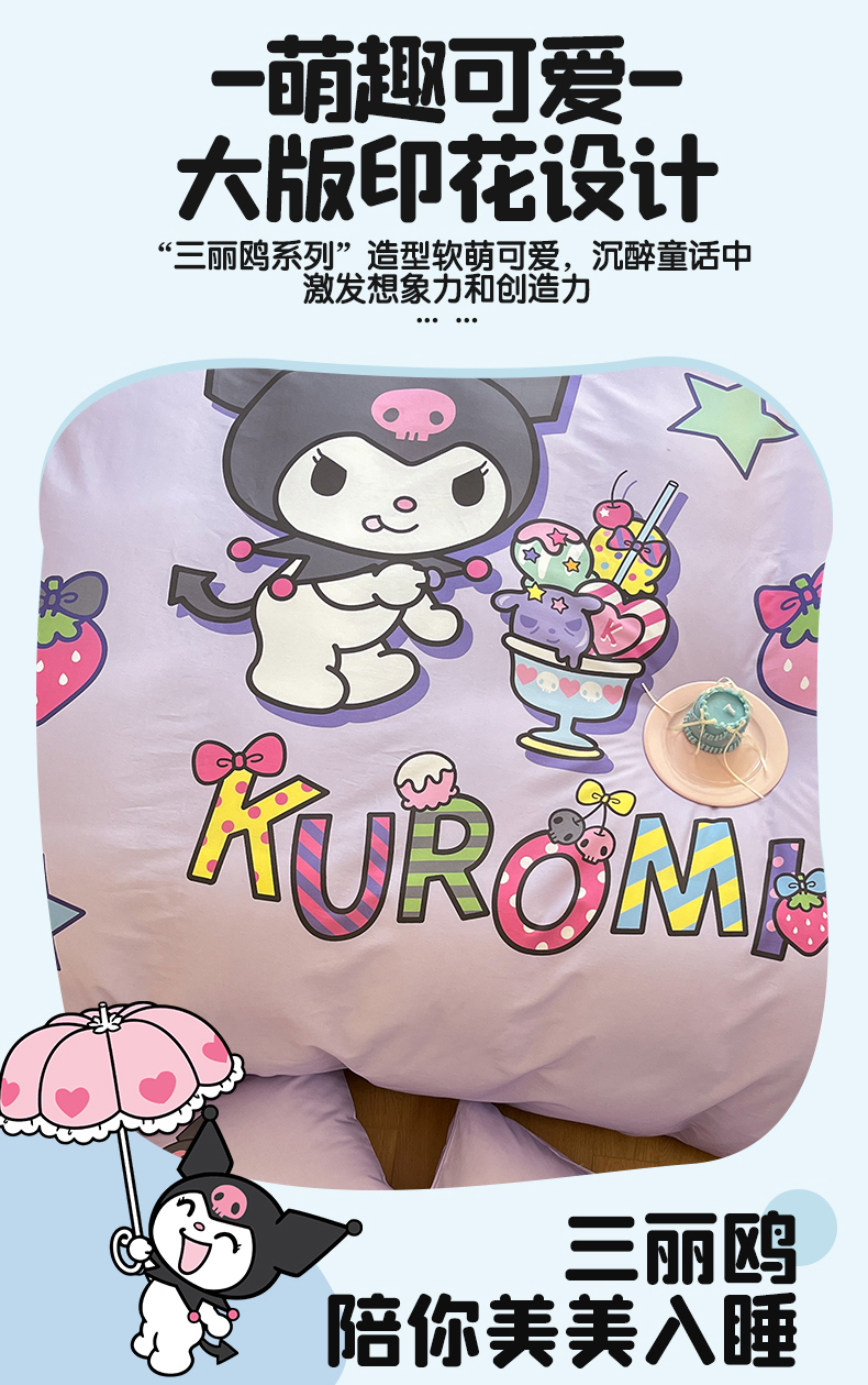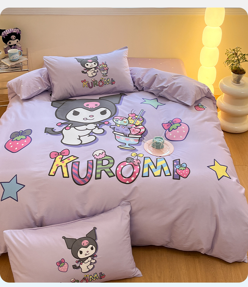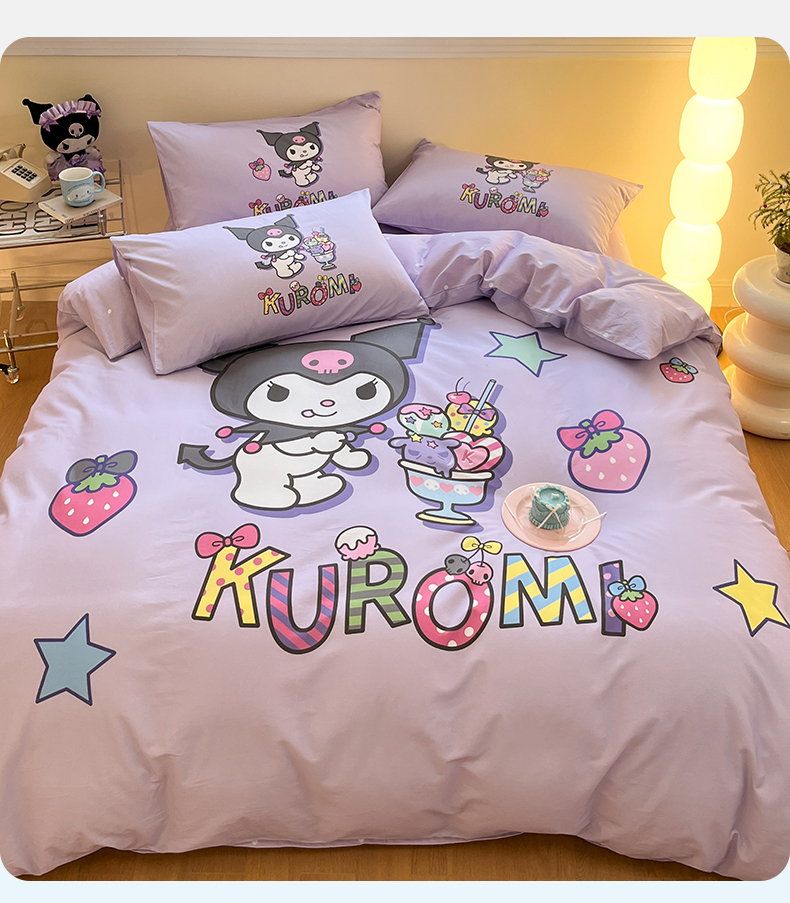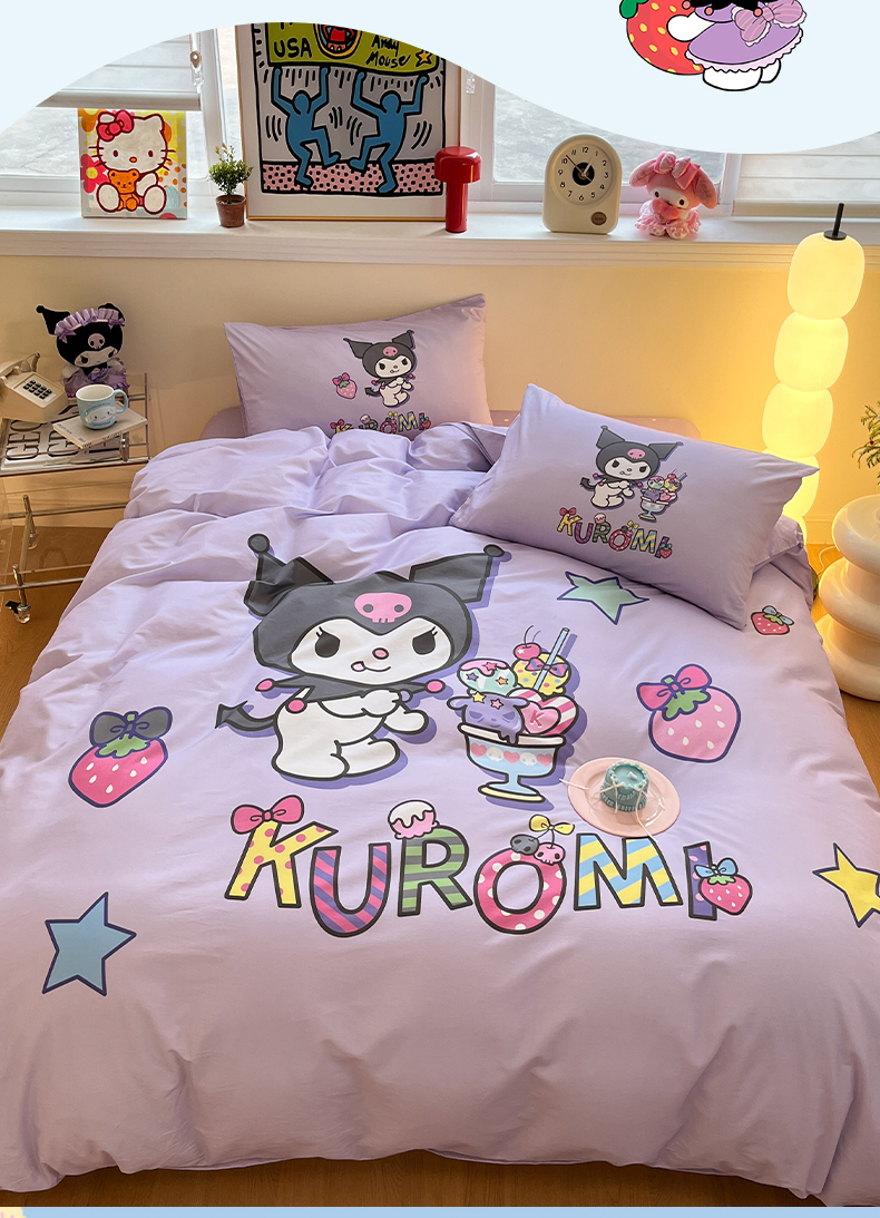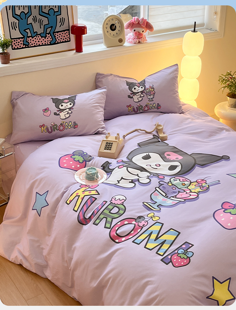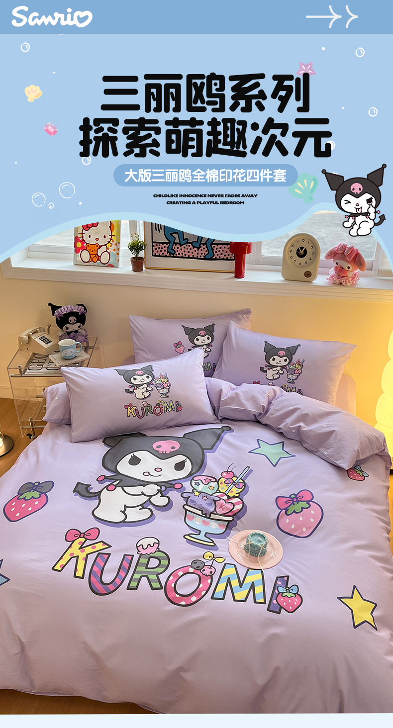 (总)蓝邻家纺 2024新款三丽鸥正版授权学生宿舍全棉印花四件套,甜甜库洛米,粉格美乐蒂,米酷粉,米酷紫,妙可乐园,牛奶大耳狗,玉桂狗