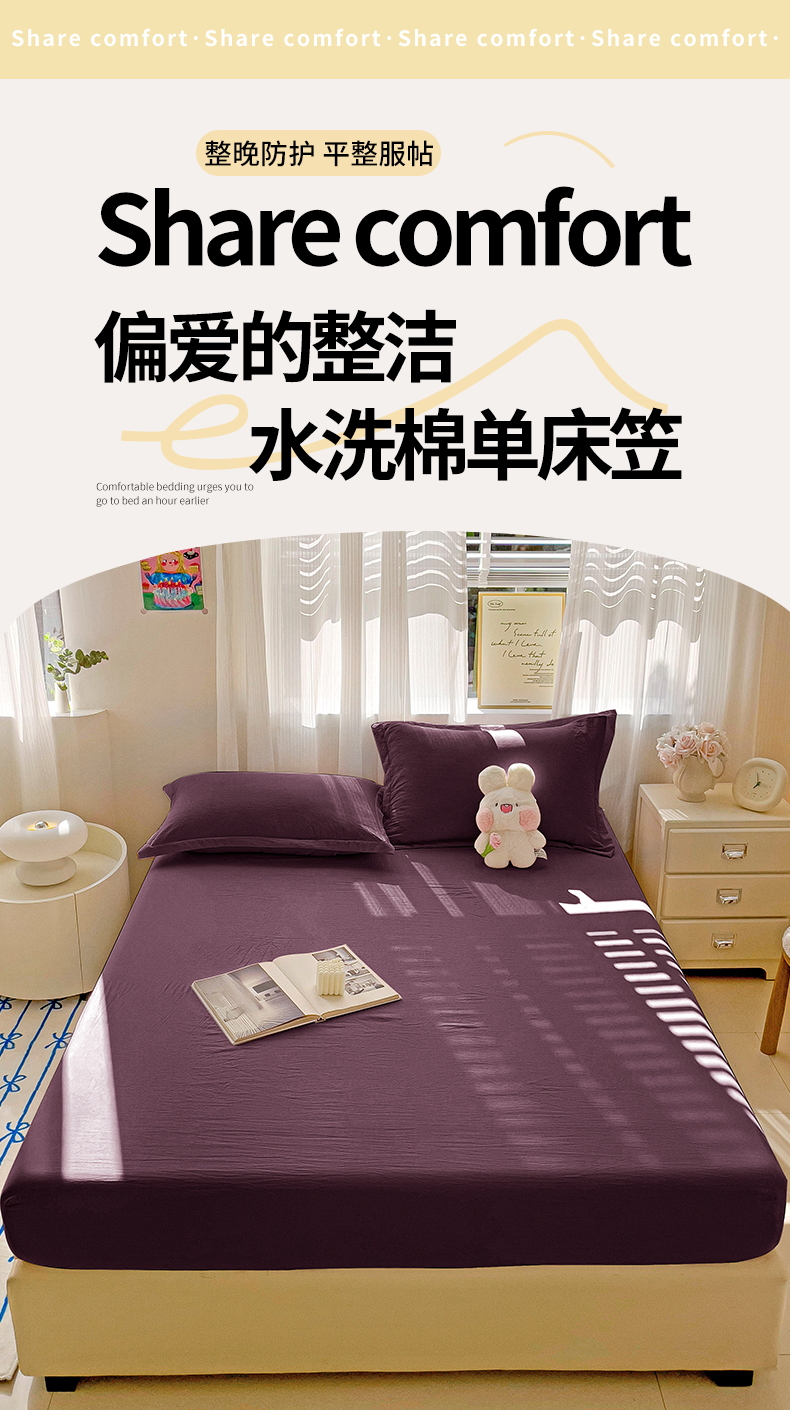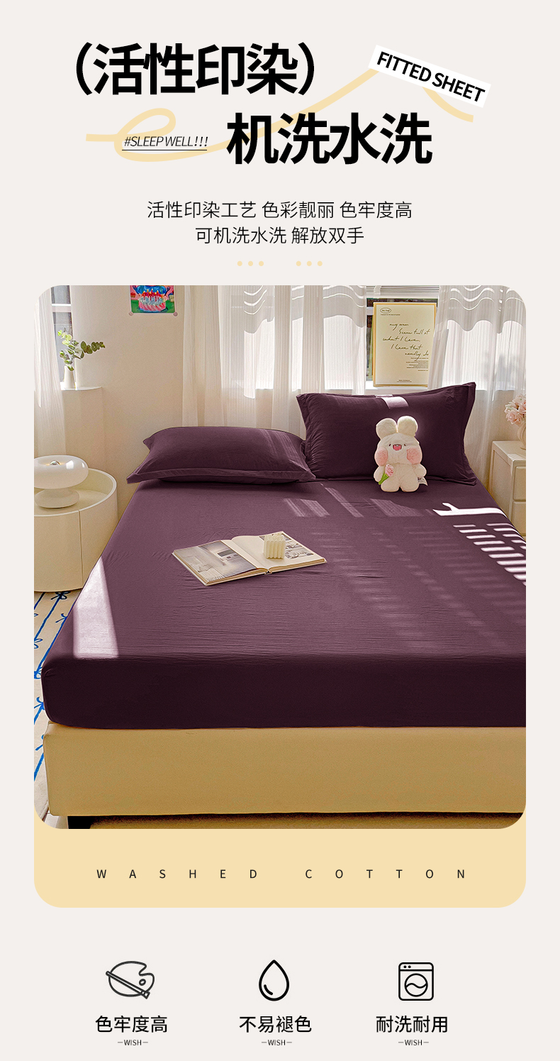 商品名称:恬澳家纺 2025新款森系水洗棉无印风单床笠场景二 森系-椰棕色