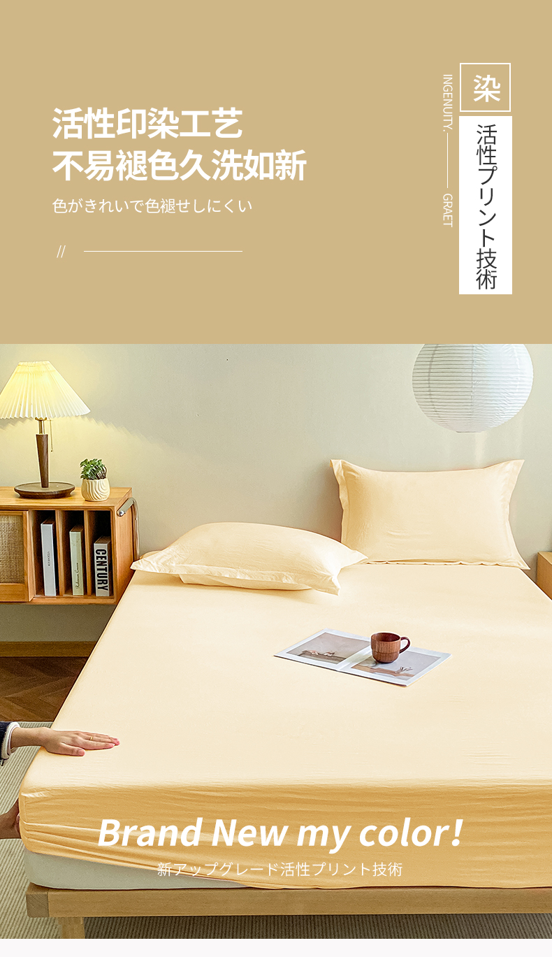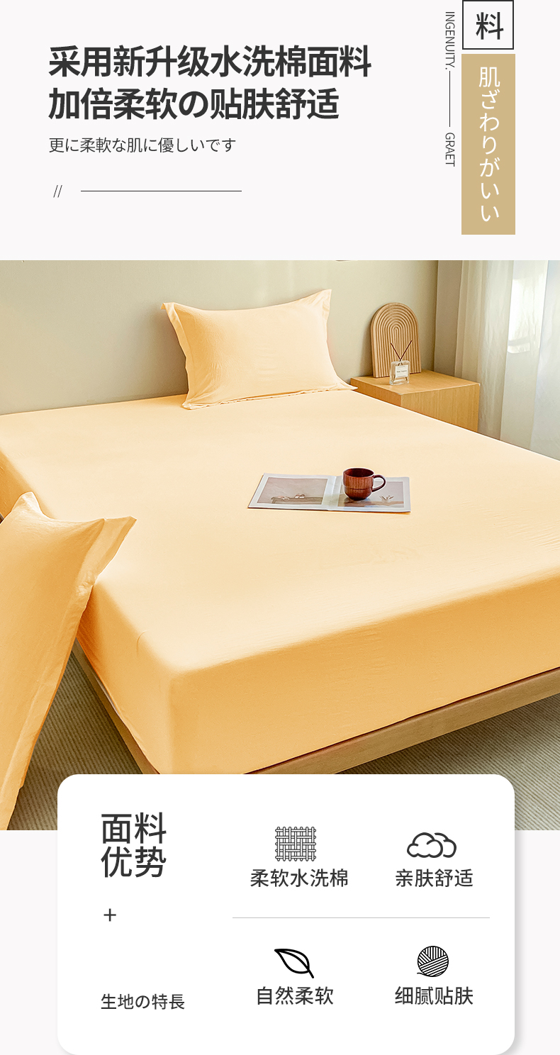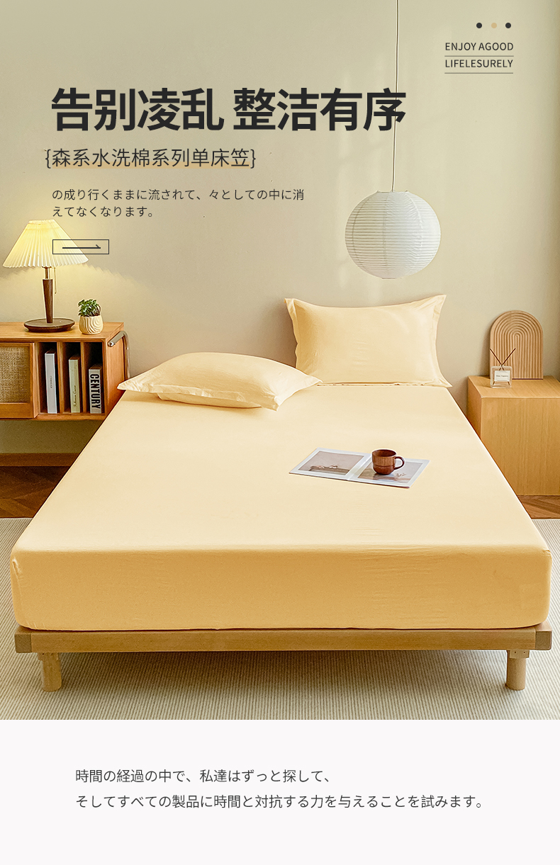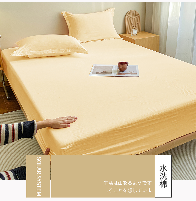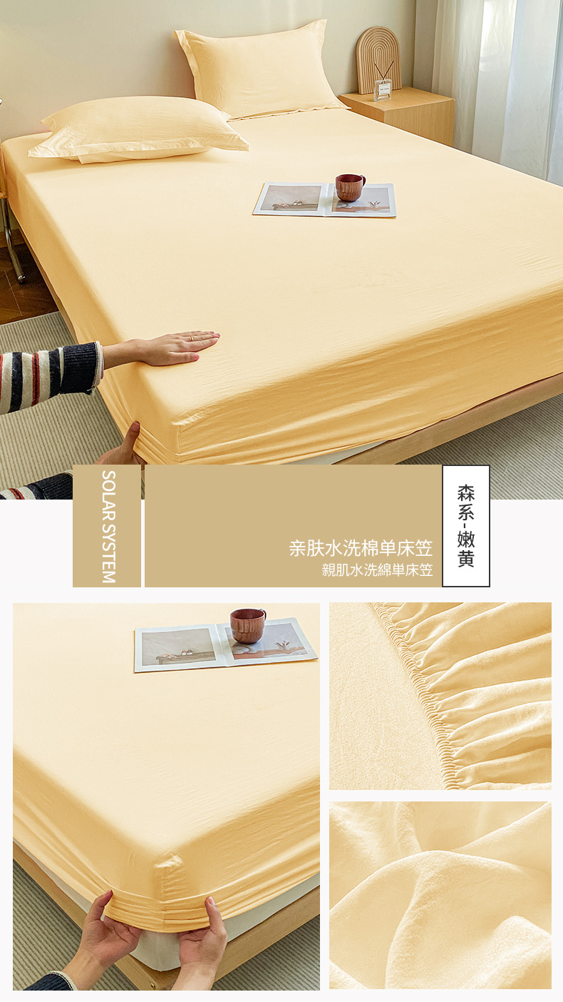 恬澳家纺 2025新款森系水洗棉无印风单床笠场景三 森系-嫩黄