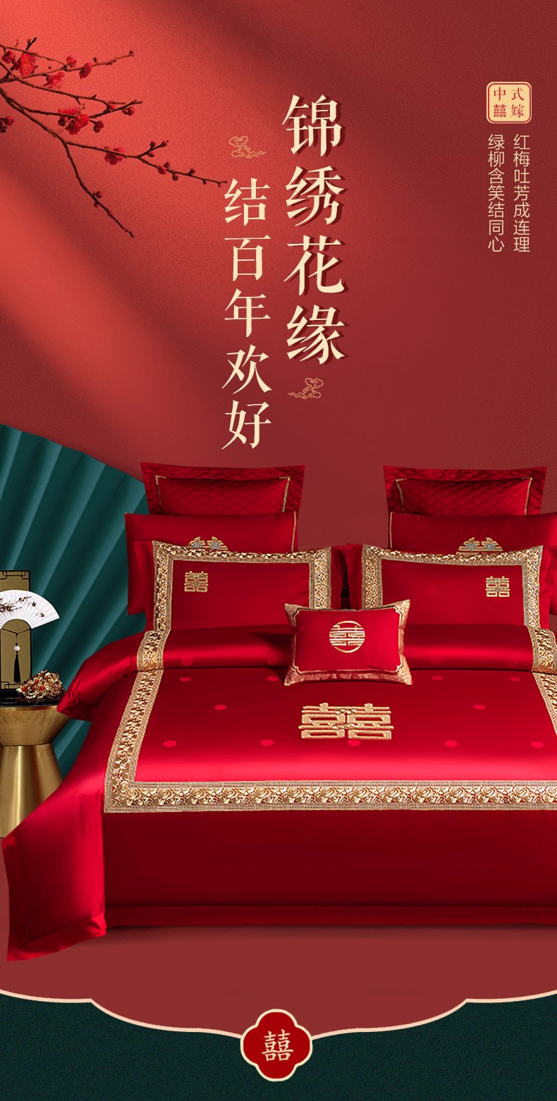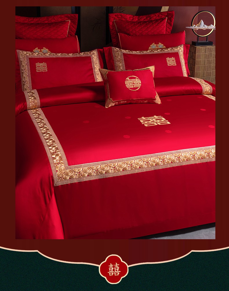 当前位置: 91家纺网 > 商品网购 > 床品套件 > 四件套 > 婚庆四件套 > 美娘阁 2025新款A版长绒棉提花B版长绒棉刺绣婚庆多件套 云喜东方