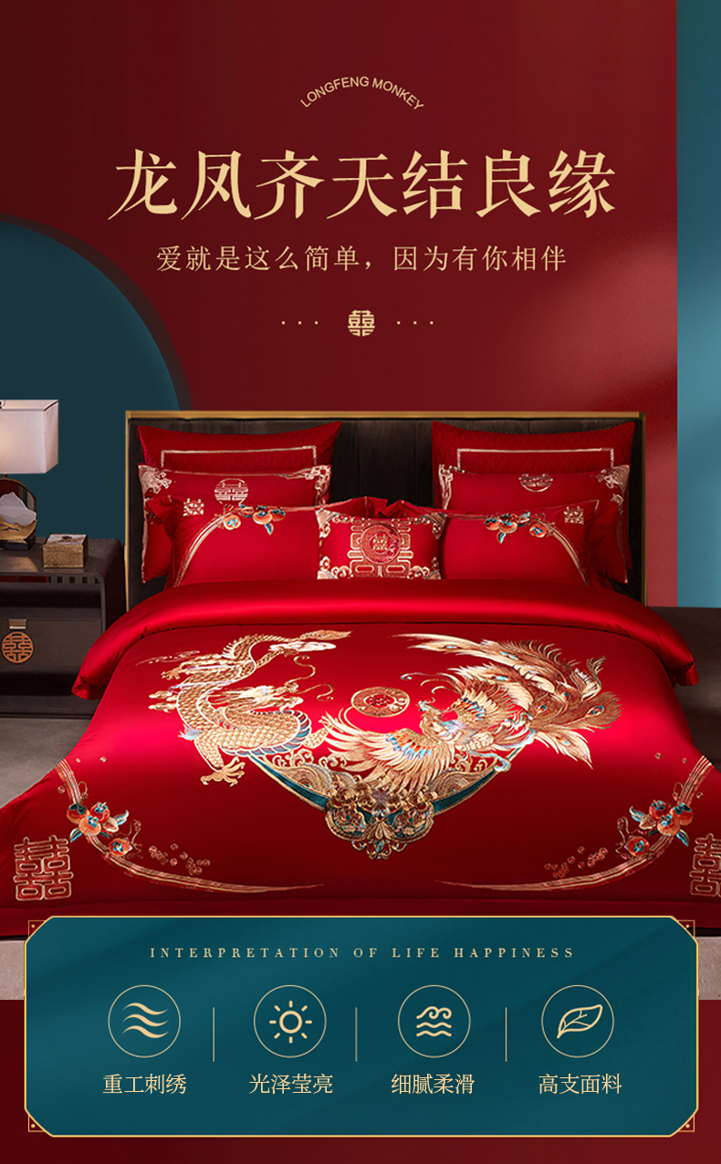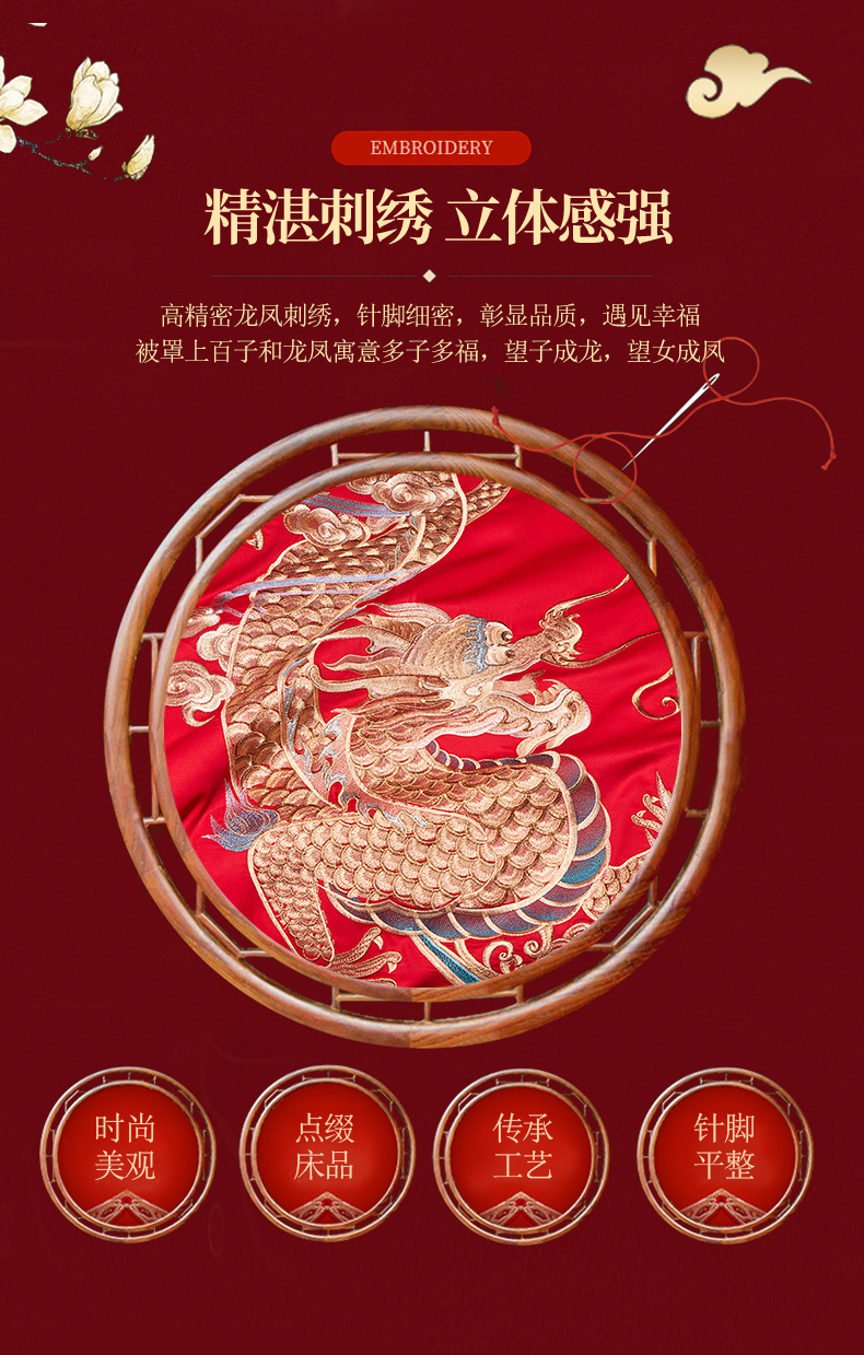当前位置: 91家纺网 > 商品网购 > 床品套件 > 四件套 > 婚庆四件套 > 美娘阁 2025新款A版长绒棉贡段B版长绒棉贡段刺绣婚庆多件套 盛世龙凤
