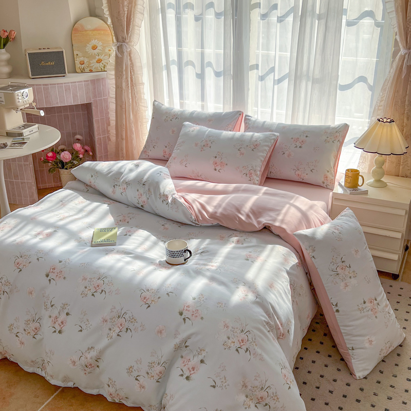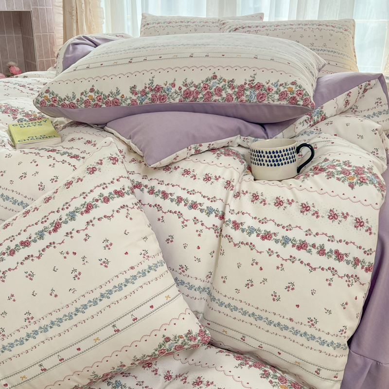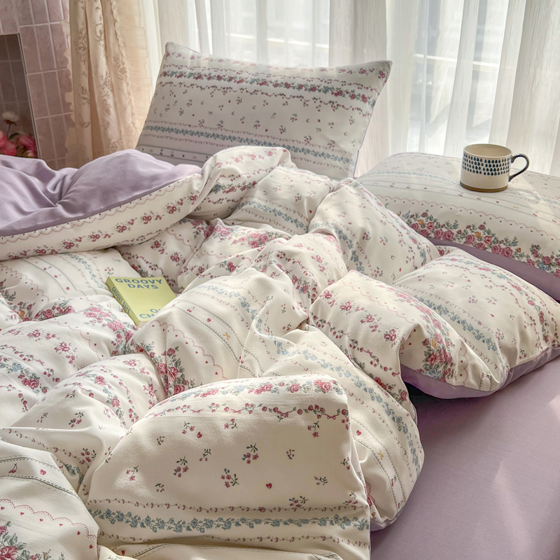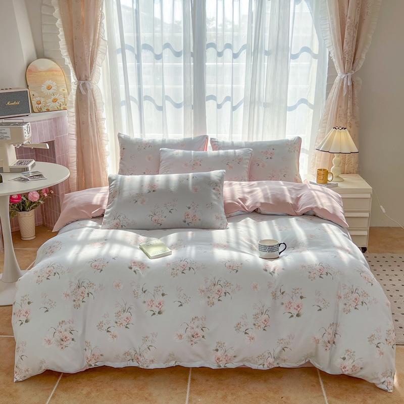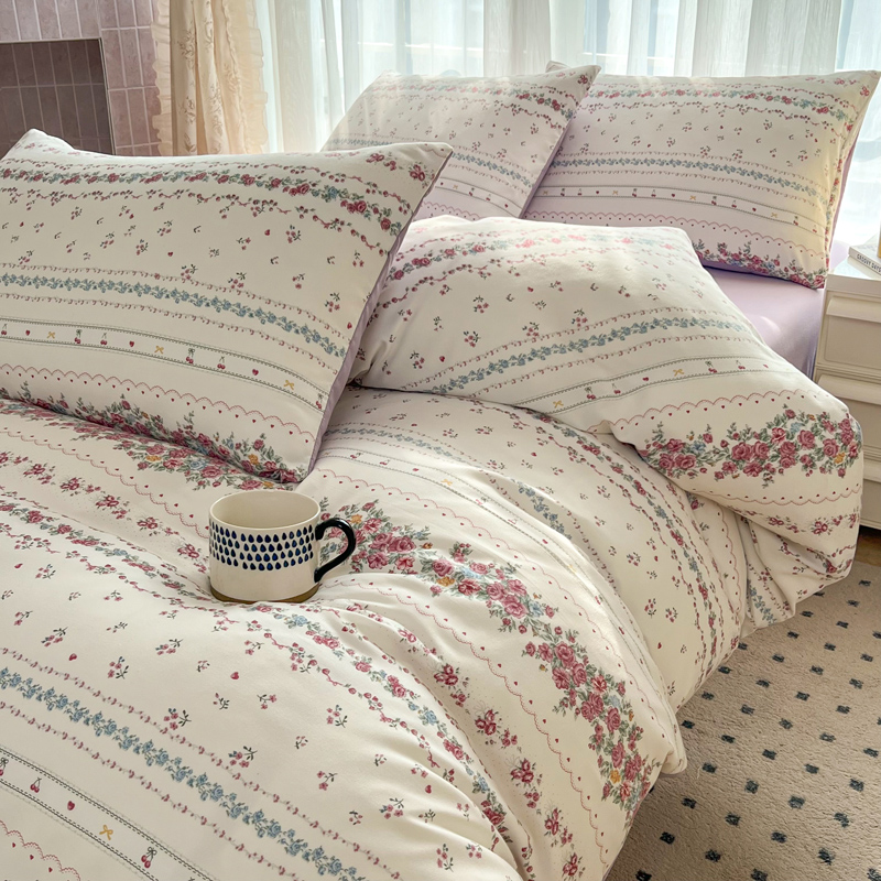 (总)麦瑞家纺 2024新款加厚磨毛小清新印花花边款四件套,安娜苏,缤纷世界,橙萌兔,花田梦,花仙子,克拉恋人,快乐兔兔,兰花情,米兰春天,怦然心动,浅浅花语,晴空,小美好,郁金香,元气桃桃