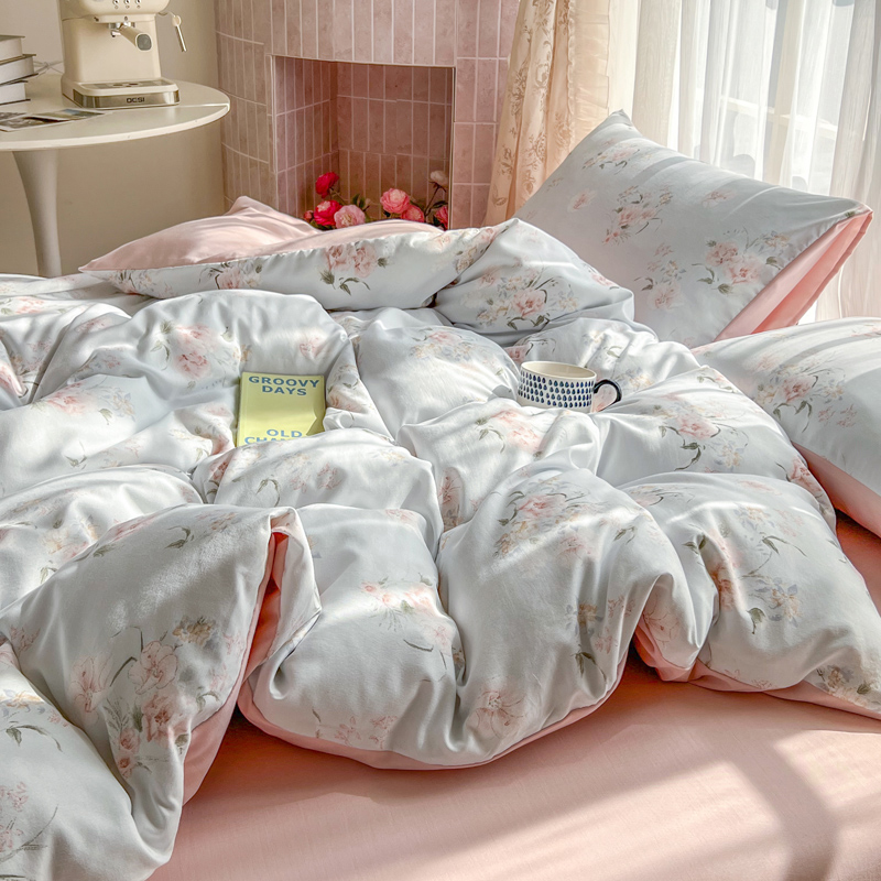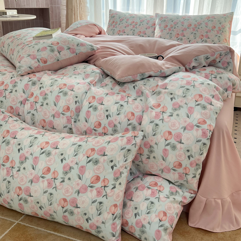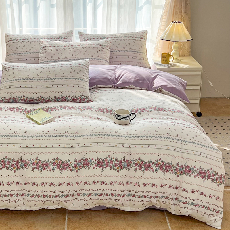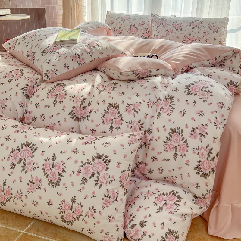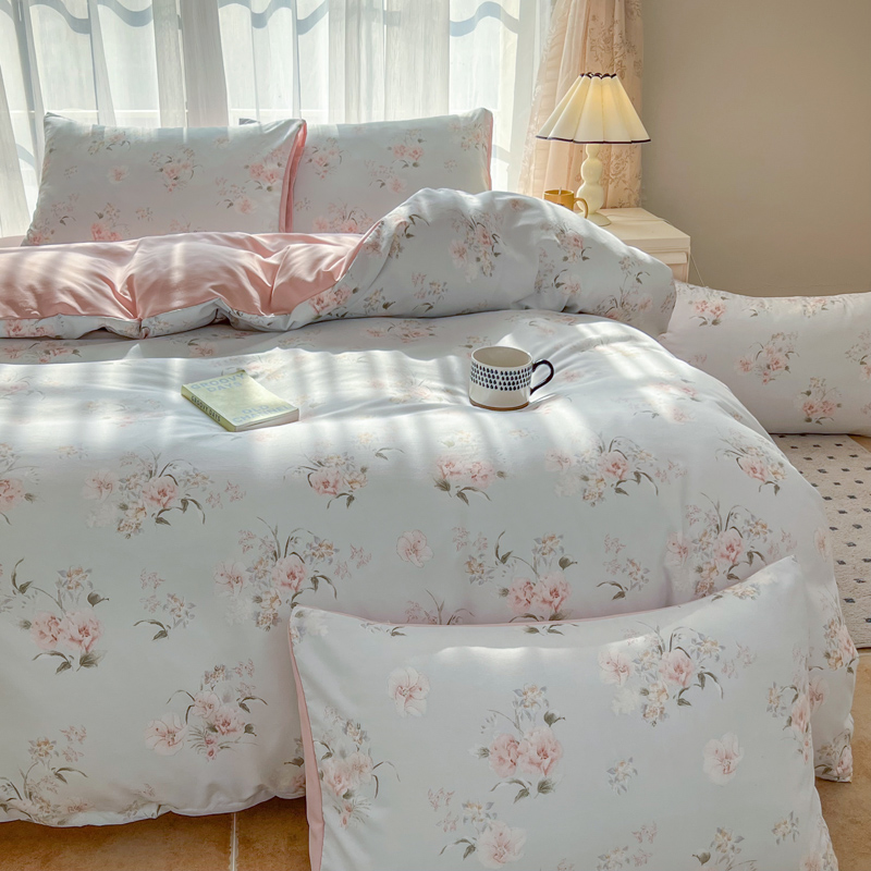 (总)麦瑞家纺 2024新款加厚磨毛小清新印花花边款四件套,安娜苏,缤纷世界,橙萌兔,花田梦,花仙子,克拉恋人,快乐兔兔,兰花情,米兰春天,怦然心动,浅浅花语,晴空,小美好,郁金香,元气桃桃