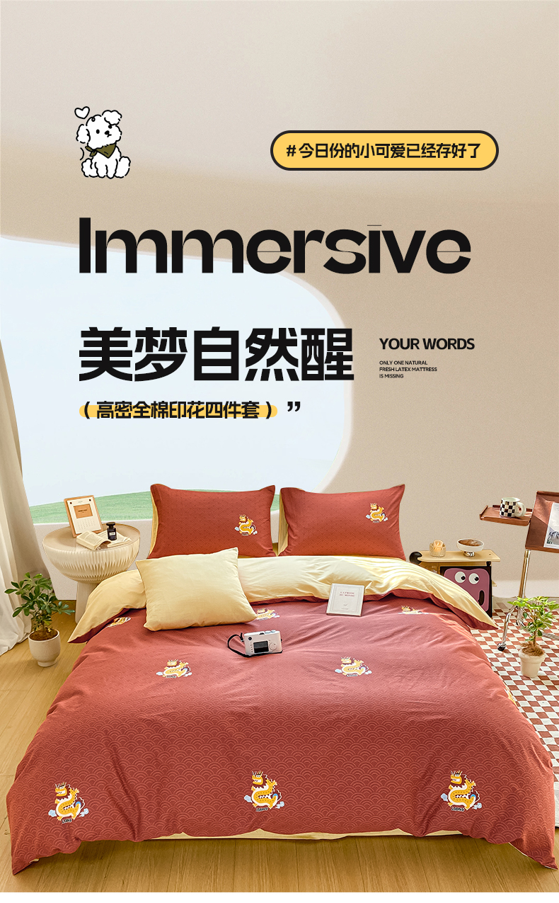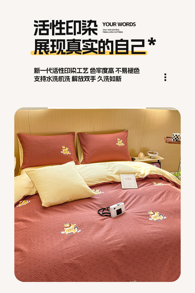 商品名称:帅露家纺 2025开春新品全棉喷气13070小清新印花纯棉全棉四件套 飞龙乘云