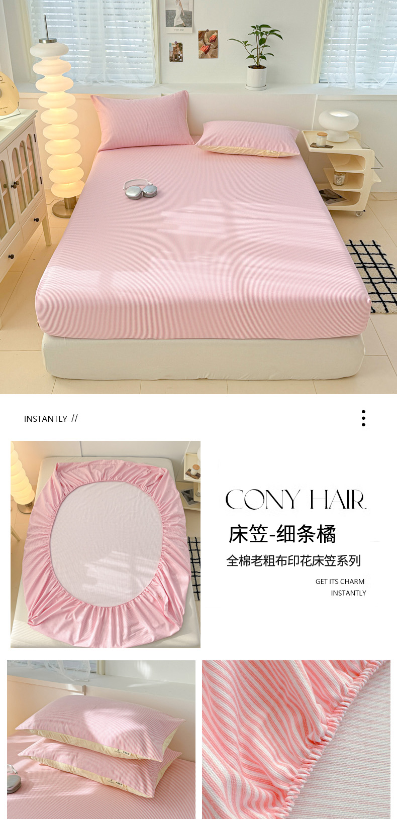 • 91家纺网 家纺一手货源 找家纺 眠博士2025新款全棉老粗布床笠 老粗布床笠-细条橘