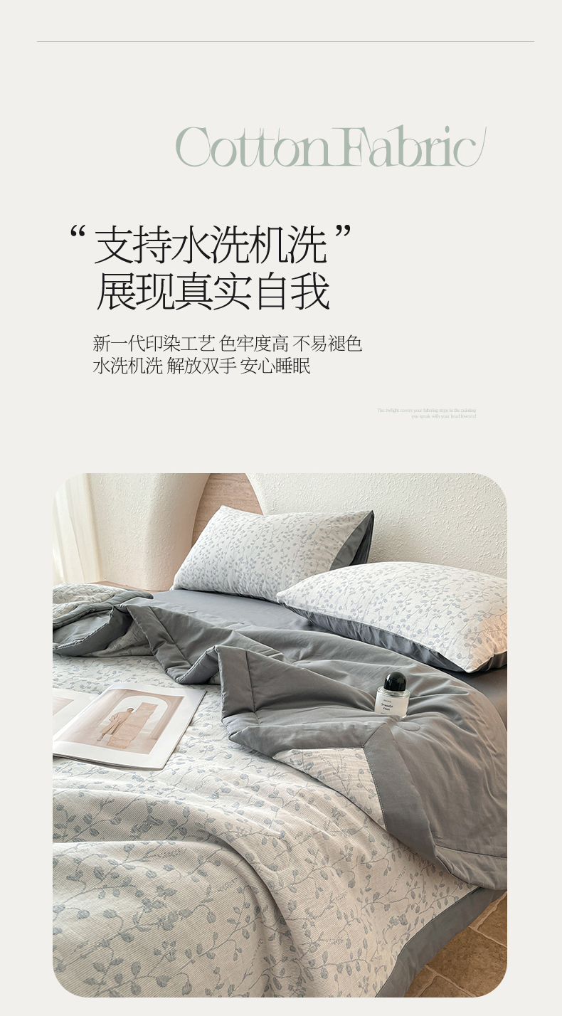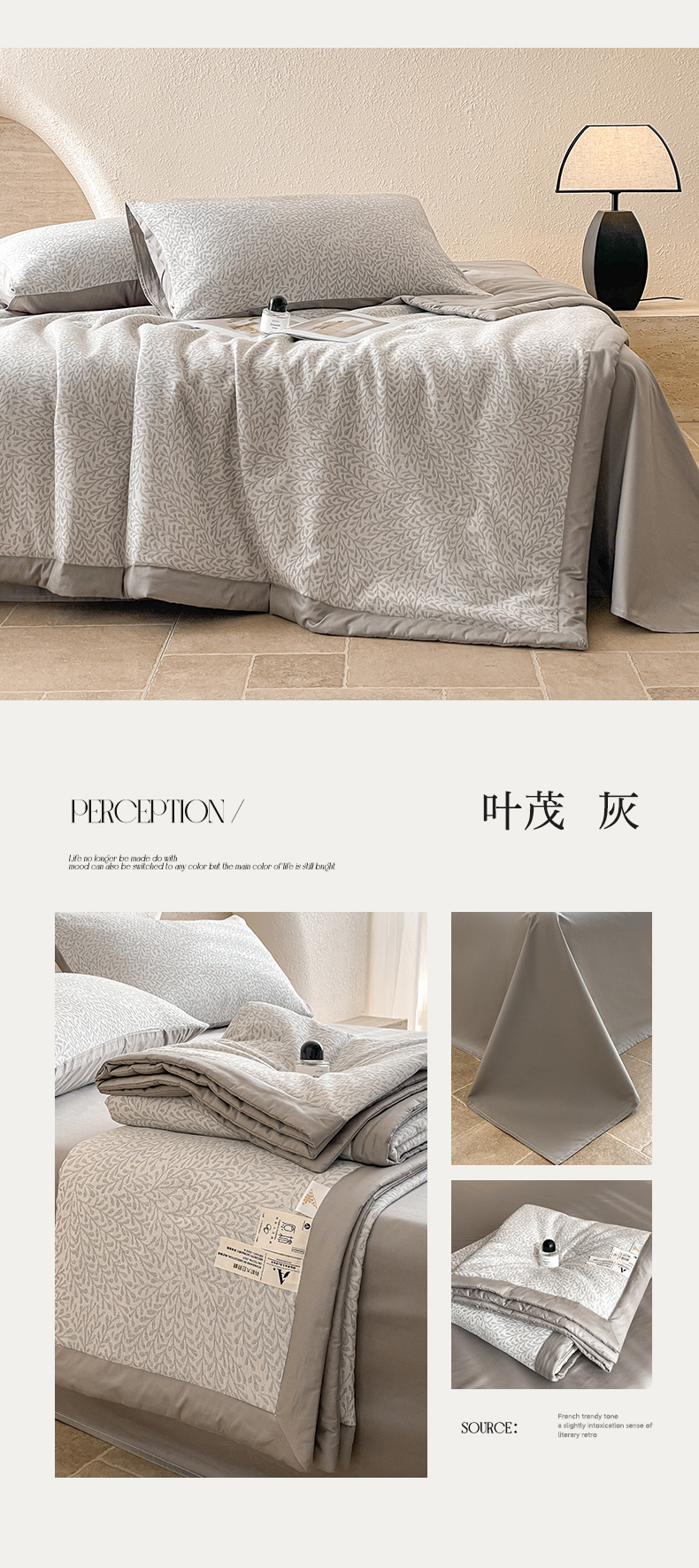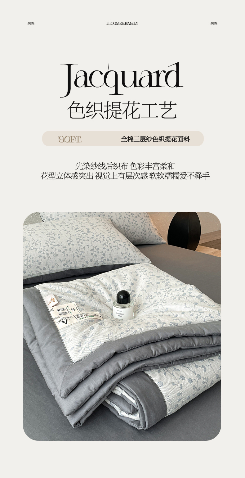 • 91家纺网 家纺一手货源 找家纺 一加一家纺2025新款A类全棉三层纱色织提花大豆夏被四件套 浅草--灰