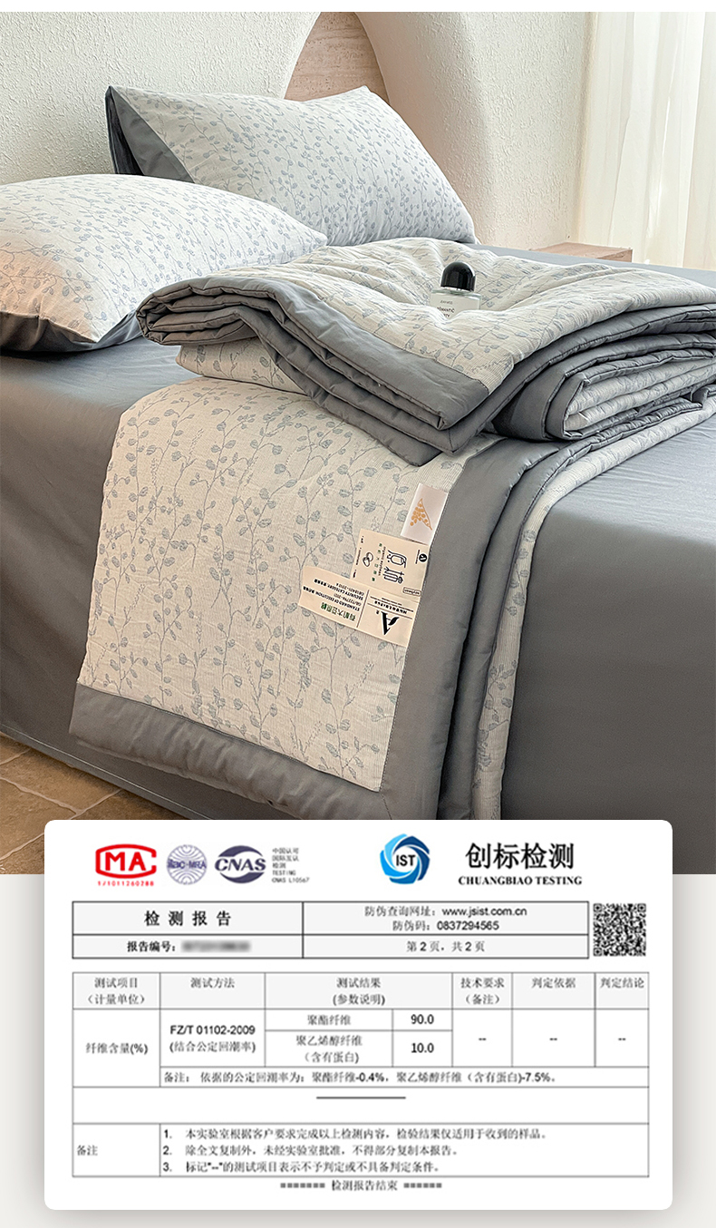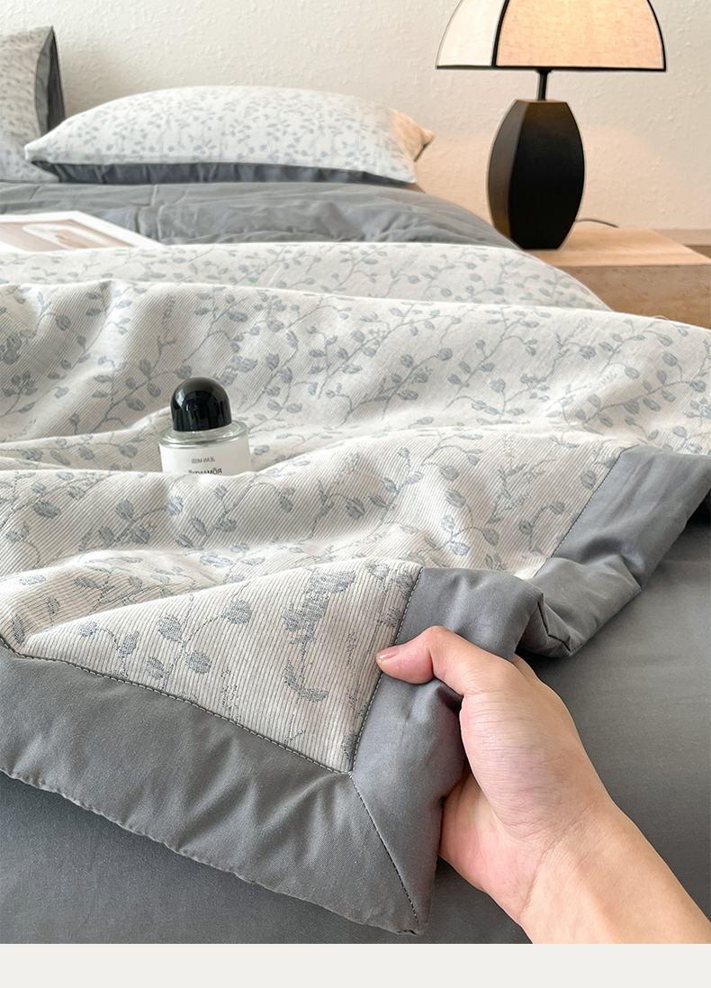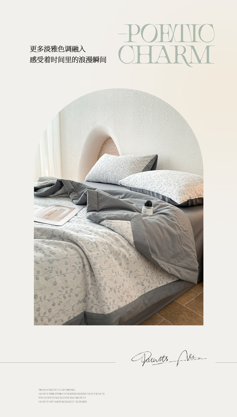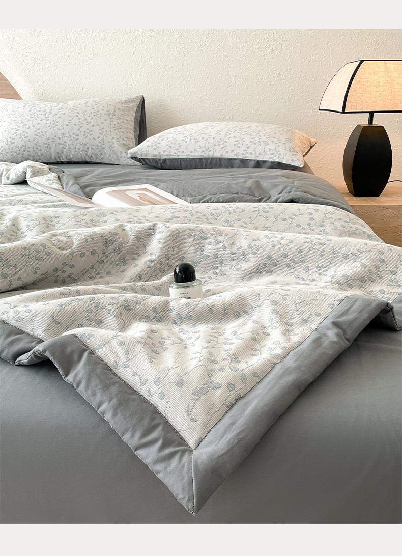 • 91家纺网 家纺一手货源 找家纺 一加一家纺2025新款A类全棉三层纱色织提花大豆夏被四件套 浅草--灰