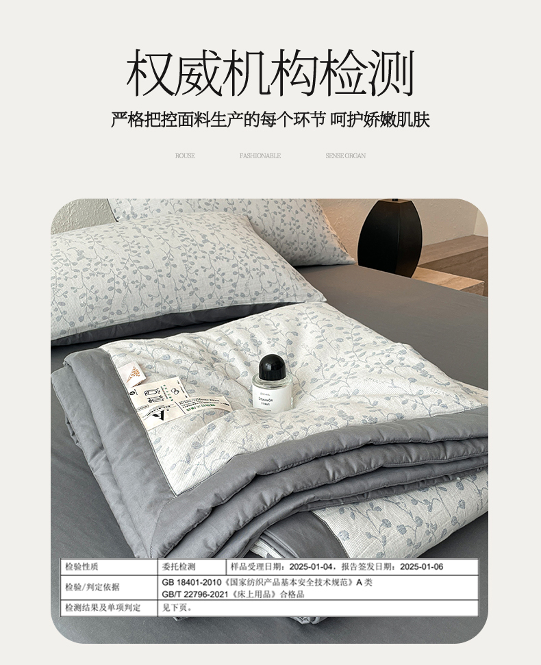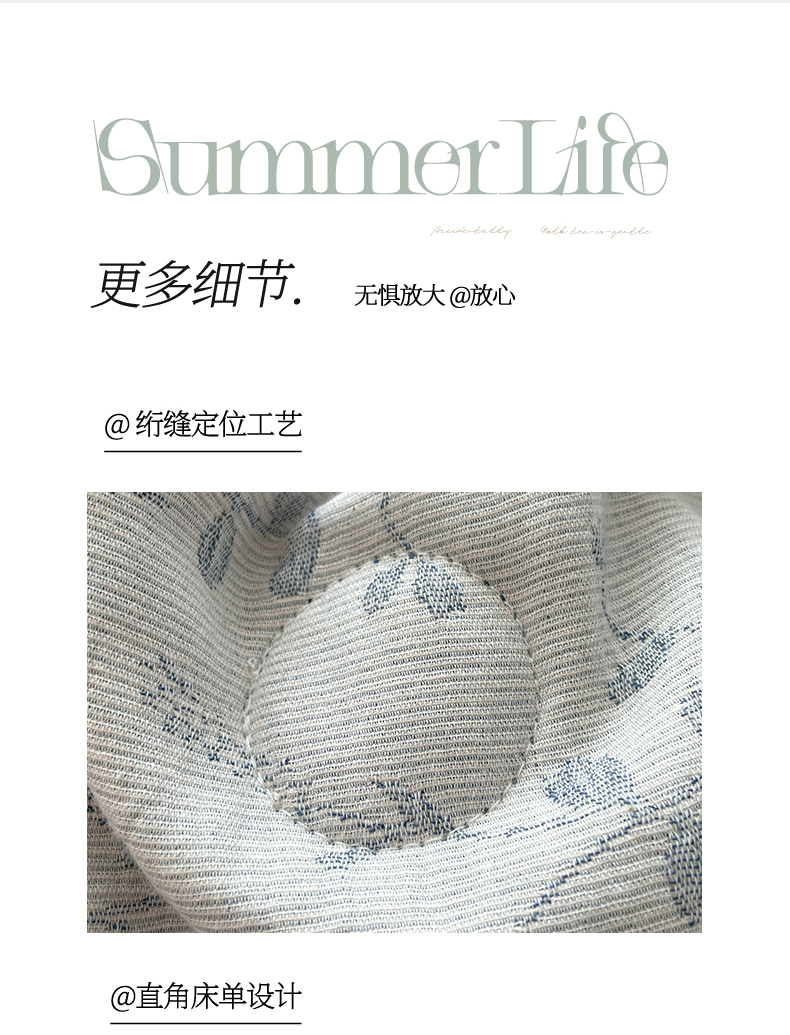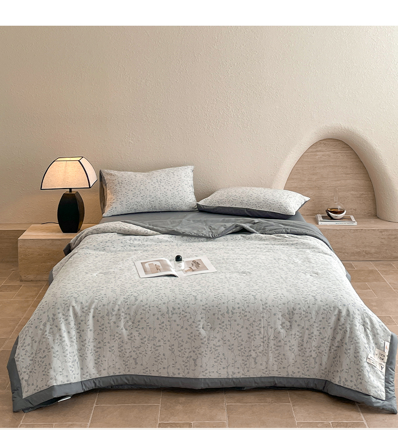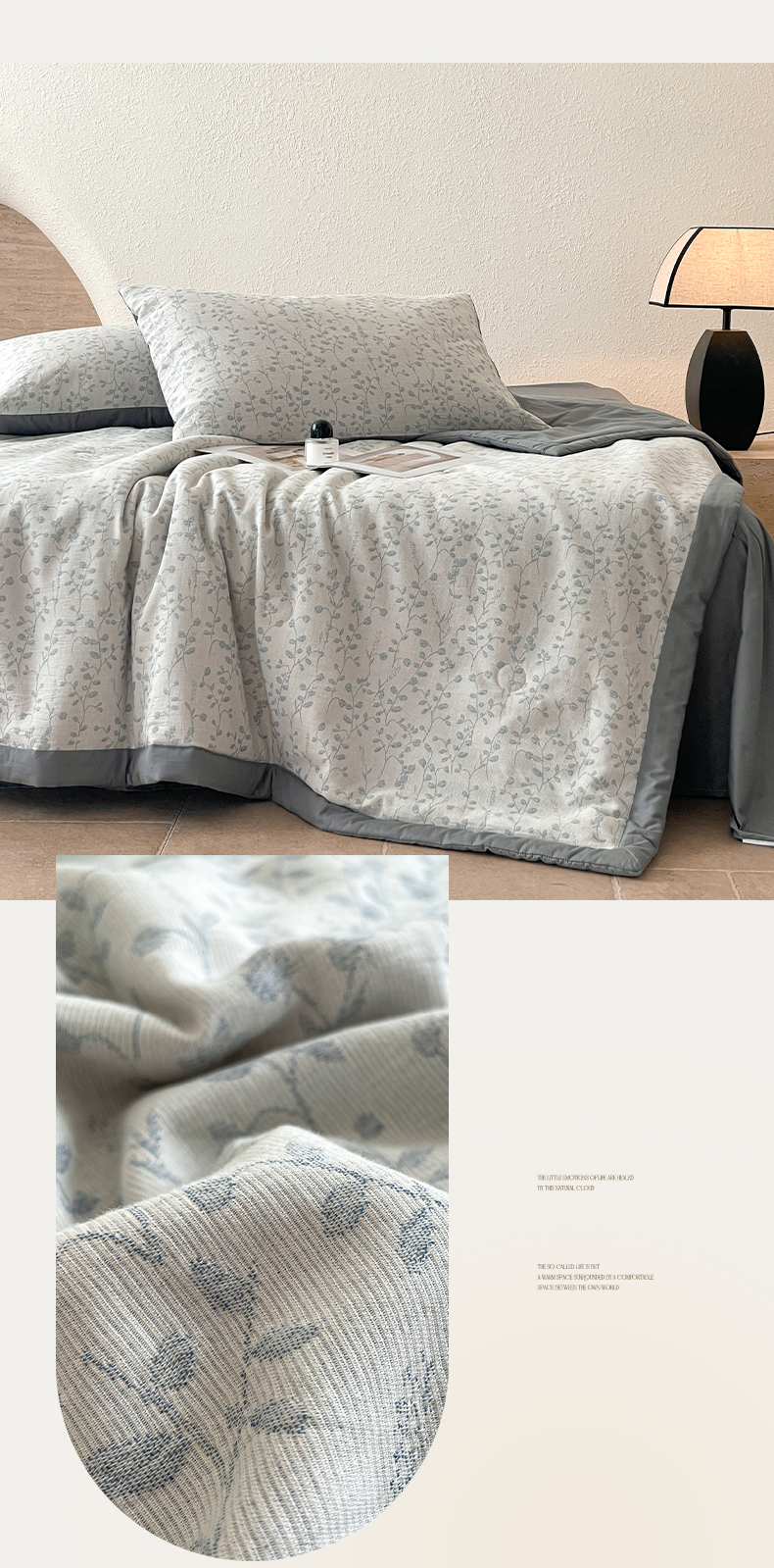 当前位置: 91家纺网 > 商品网购 > 被子 > 夏被 > 一加一家纺2025新款A类全棉三层纱色织提花大豆夏被四件套 浅草--灰