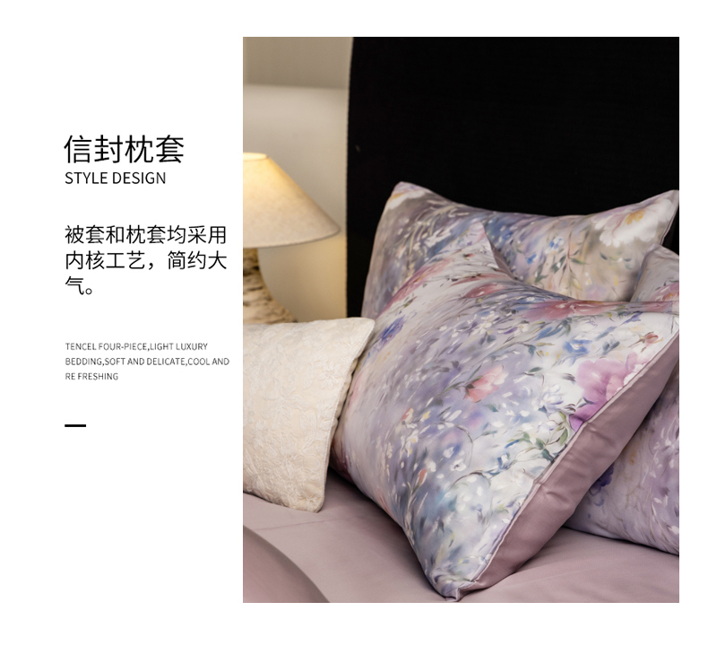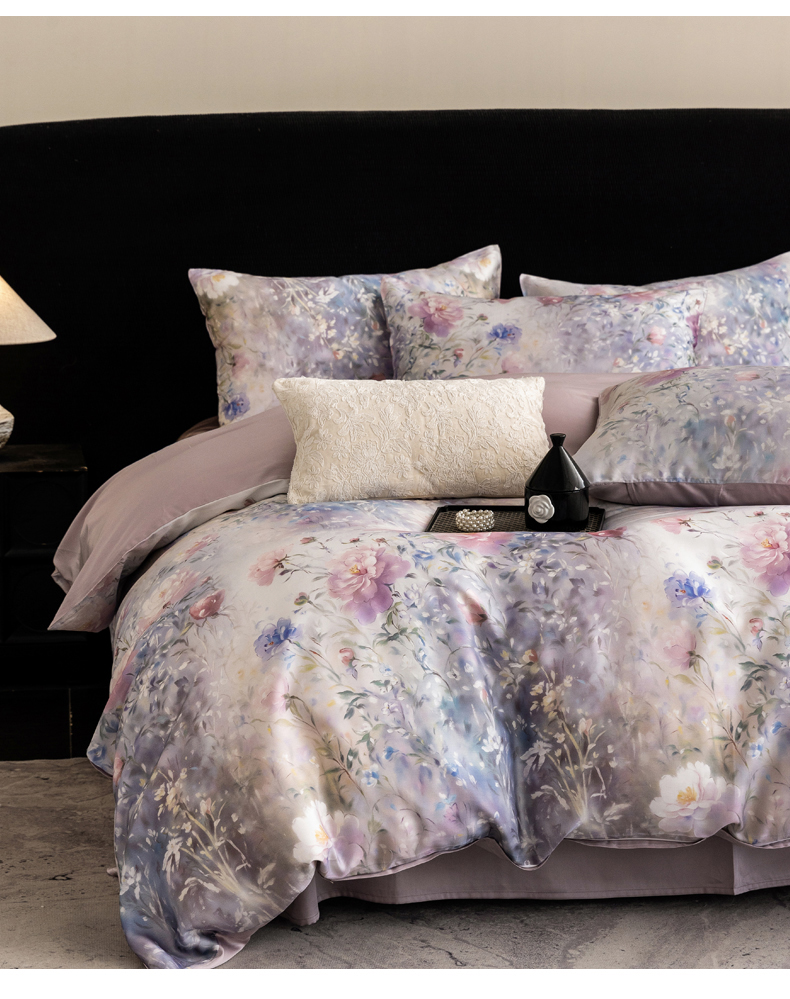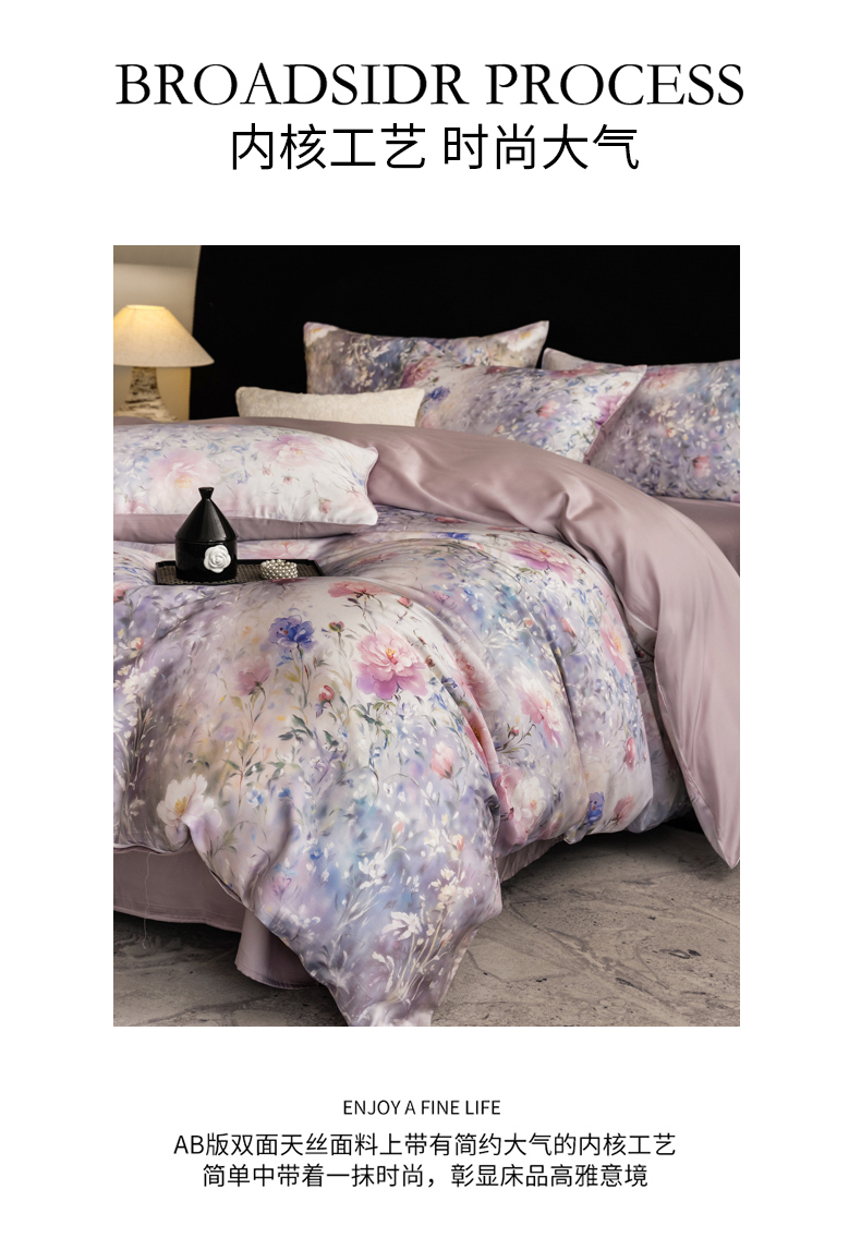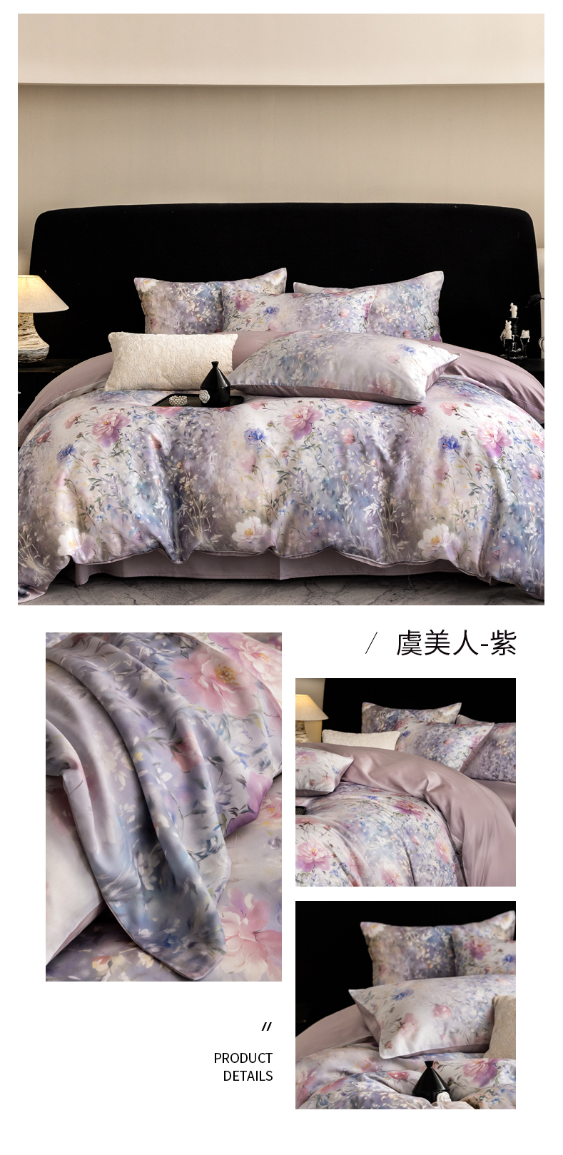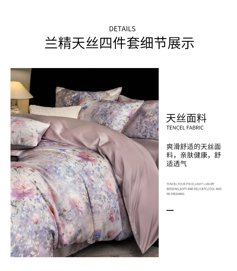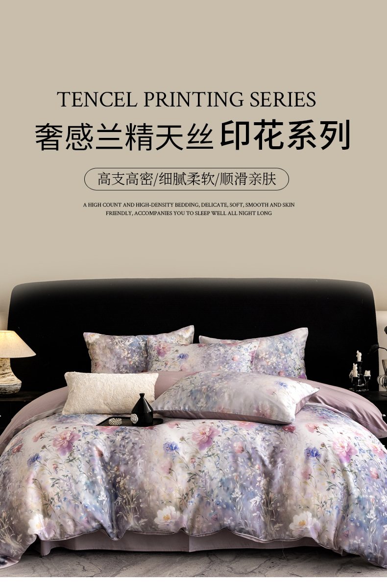 商品名称:立奥被业 2025年新款100%兰精天丝四件套天丝数码印花四件套 虞美人-紫
