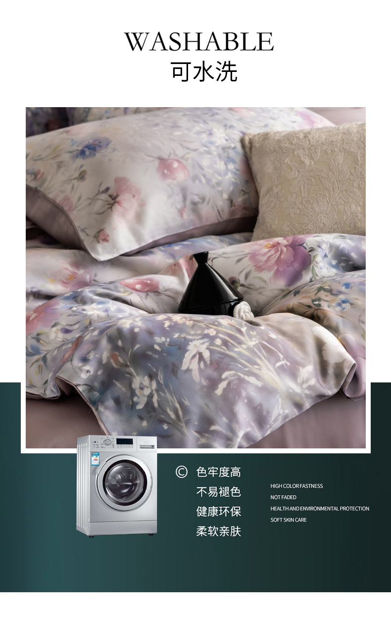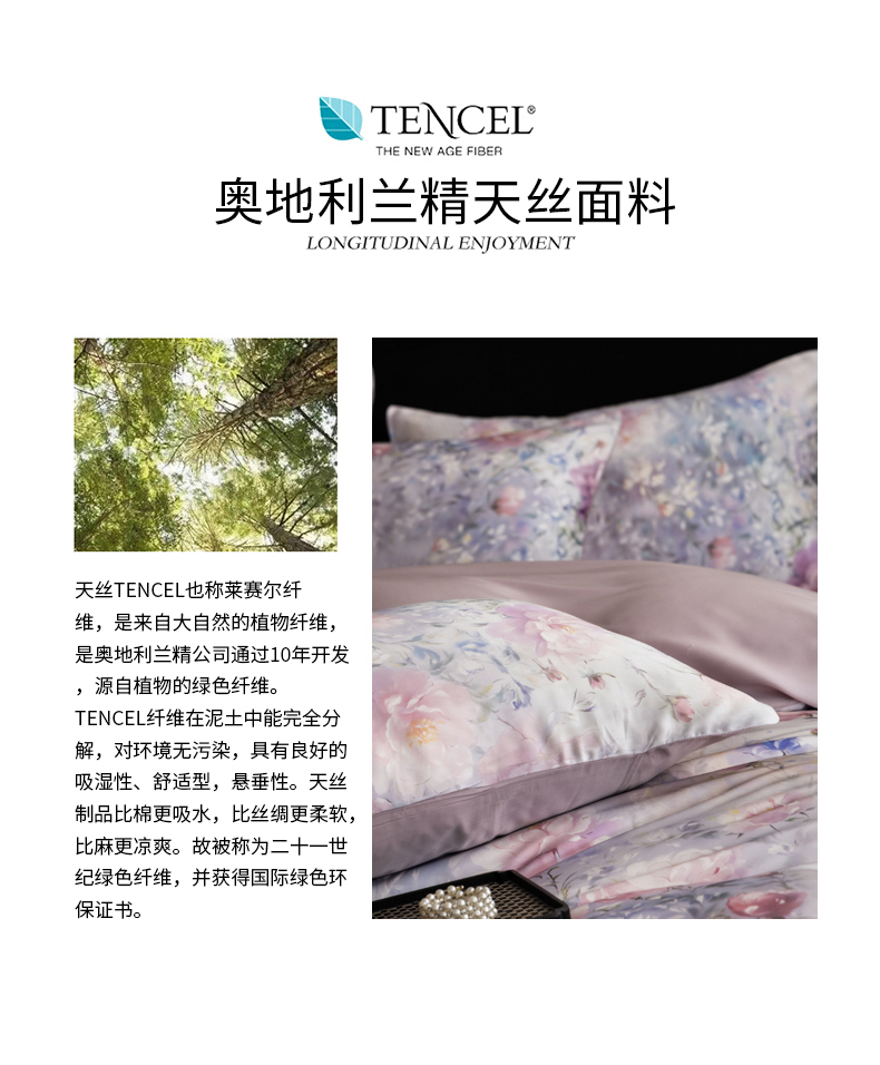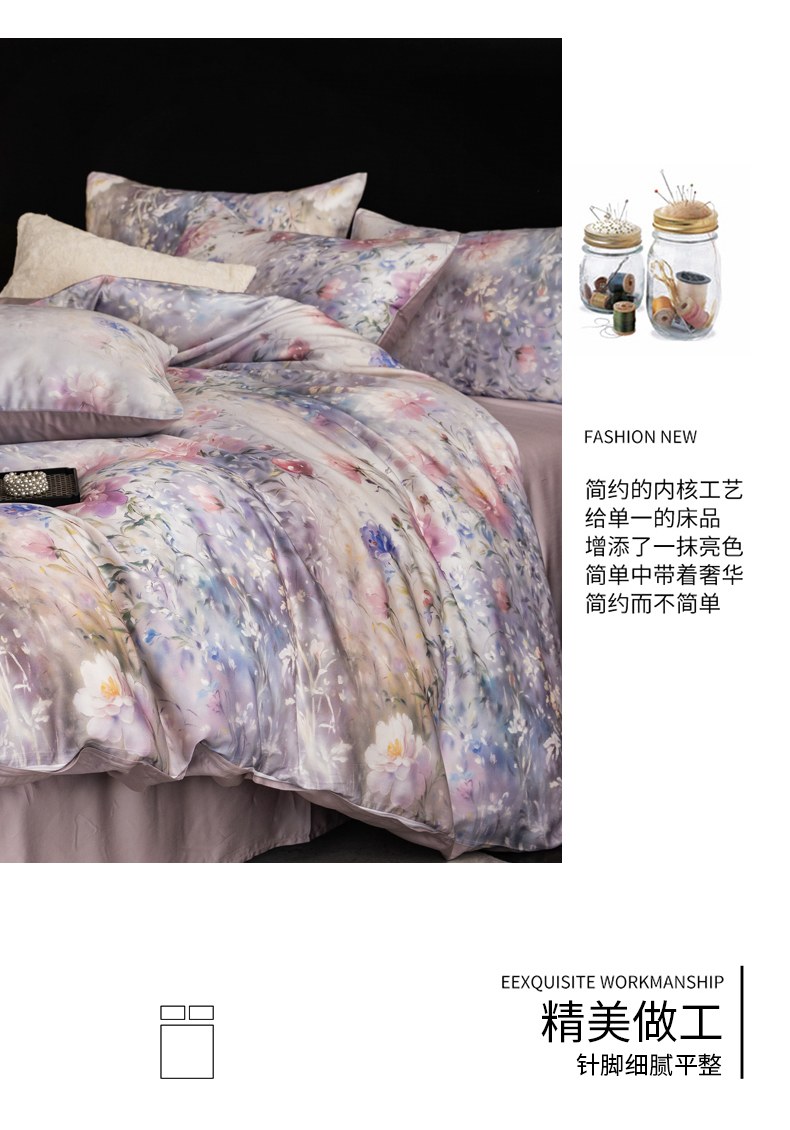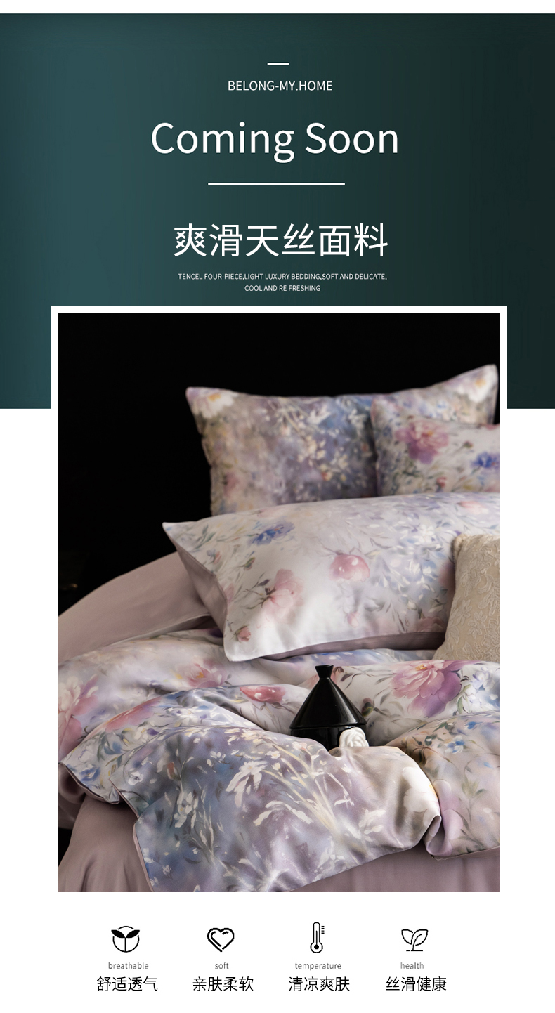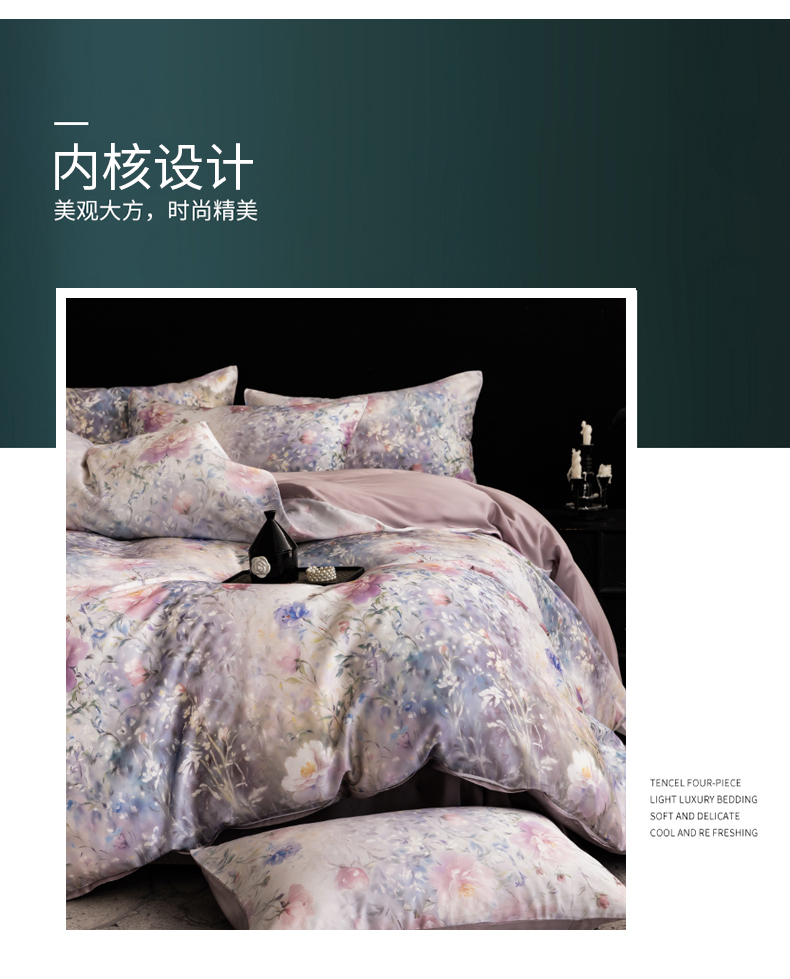 商品名称:立奥被业 2025年新款100%兰精天丝四件套天丝数码印花四件套 虞美人-紫