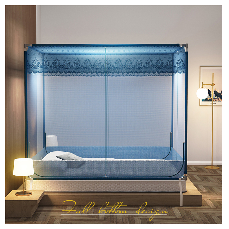 (总)飞轮海蚊帐 2023新款U型三开门遮光坐床蚊帐-Z-75,黛蓝,奶油黄,香槟