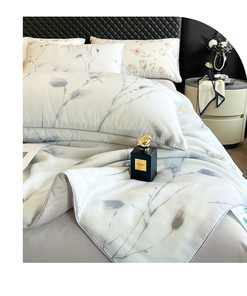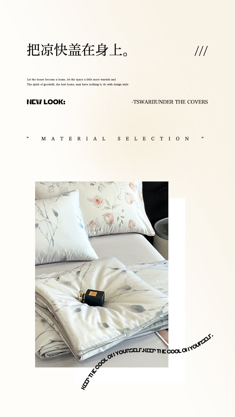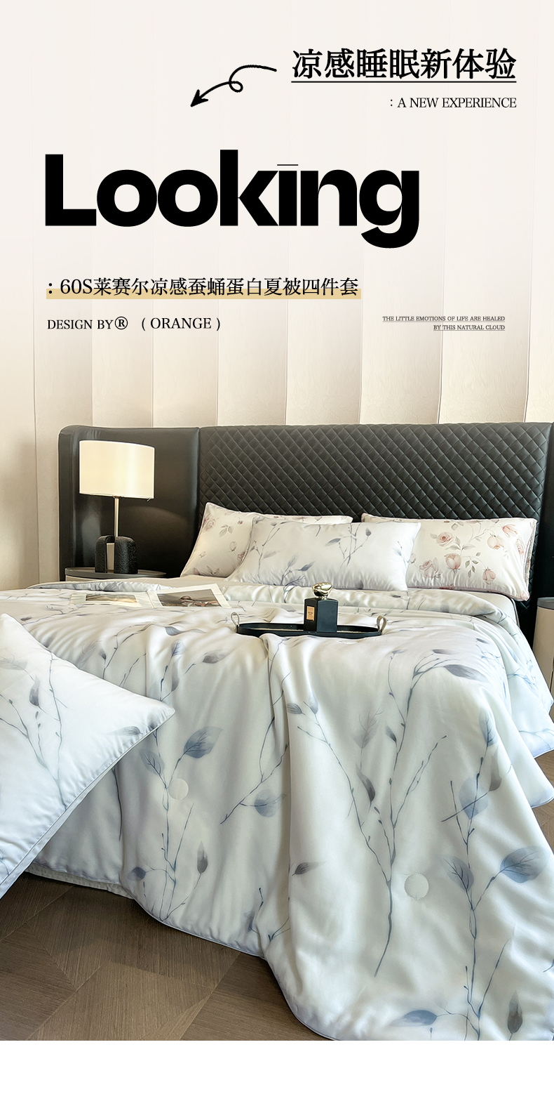 • 91家纺网 家纺一手货源 找家纺 一加一 2025新款60S莱赛尔凉感蚕蛹蛋白夏被四件套 静谧