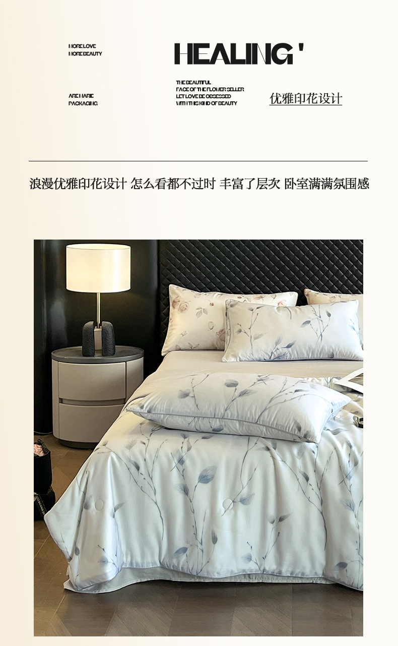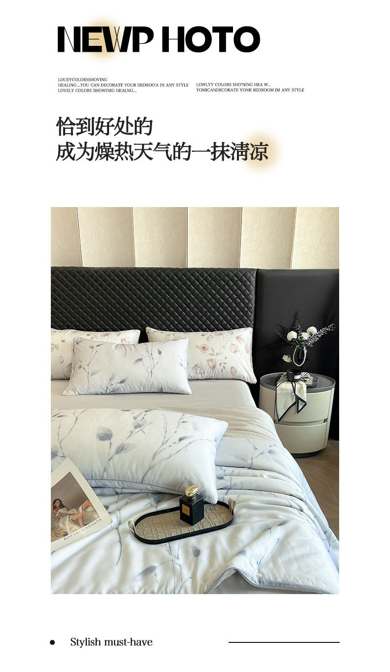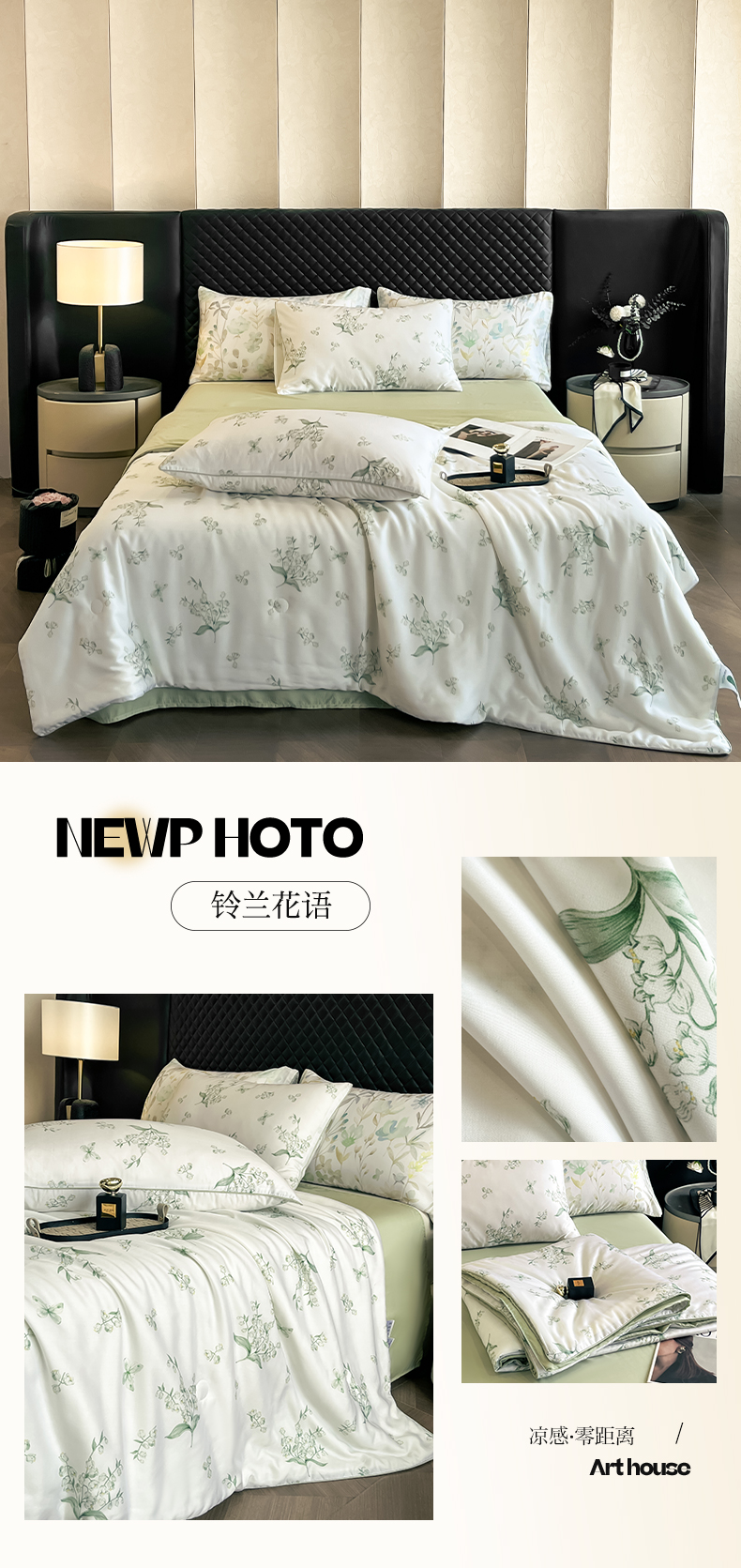 • 91家纺网 家纺一手货源 找家纺 一加一 2025新款60S莱赛尔凉感蚕蛹蛋白夏被四件套 静谧