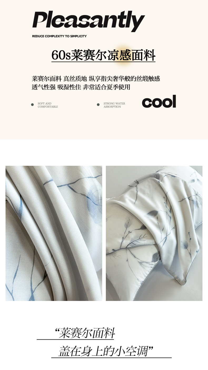 一加一 2025新款60S莱赛尔凉感蚕蛹蛋白夏被四件套 静谧