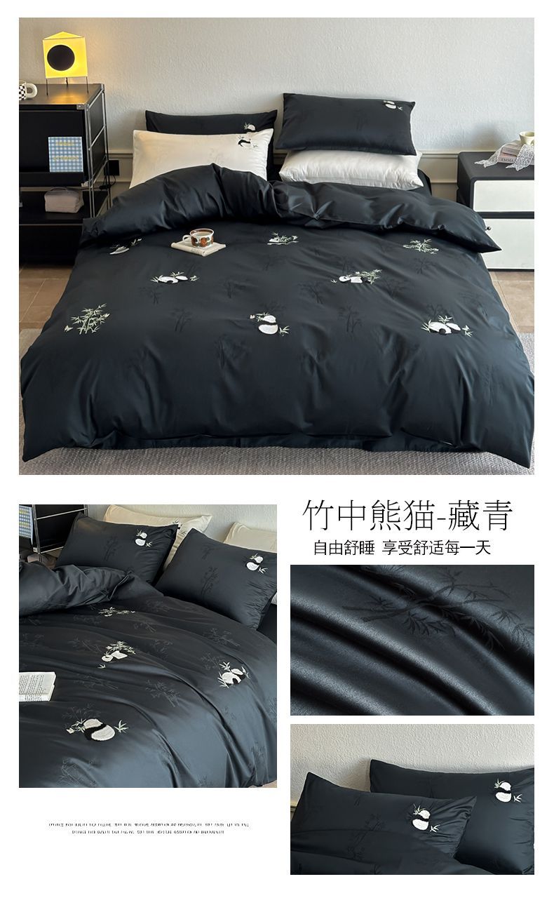 商品名称:佰亿莱 2025新款100s长绒棉四件套 竹中熊猫-藏青