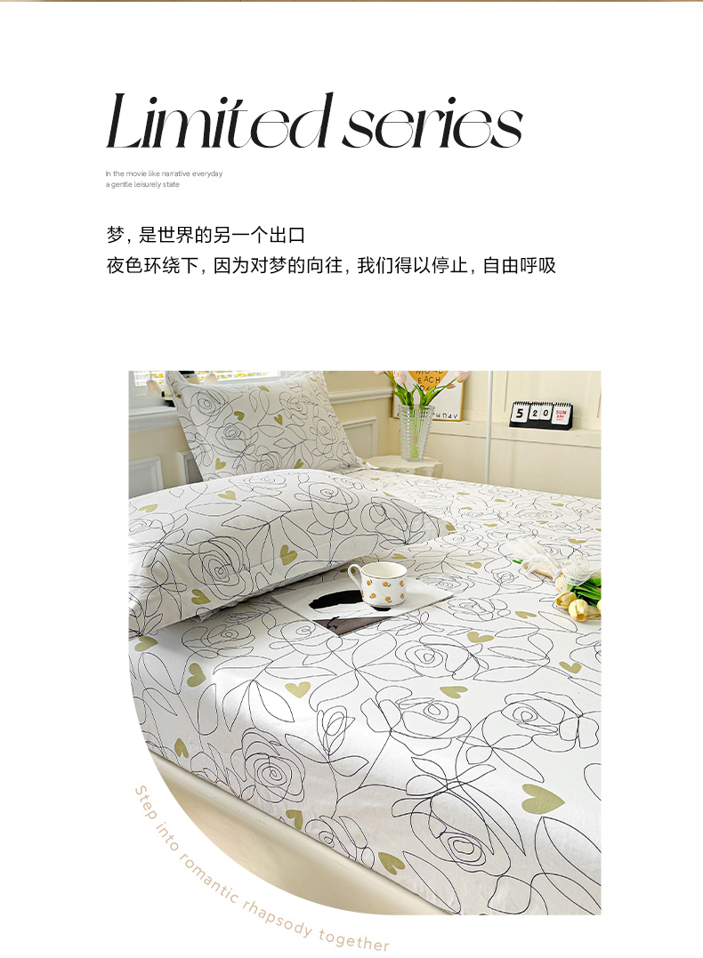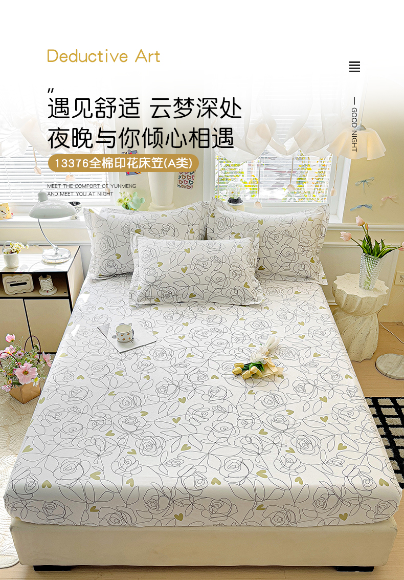 大柏树 2025新款全棉13376印花四件套系列(可定制)-单床笠玫瑰爱情