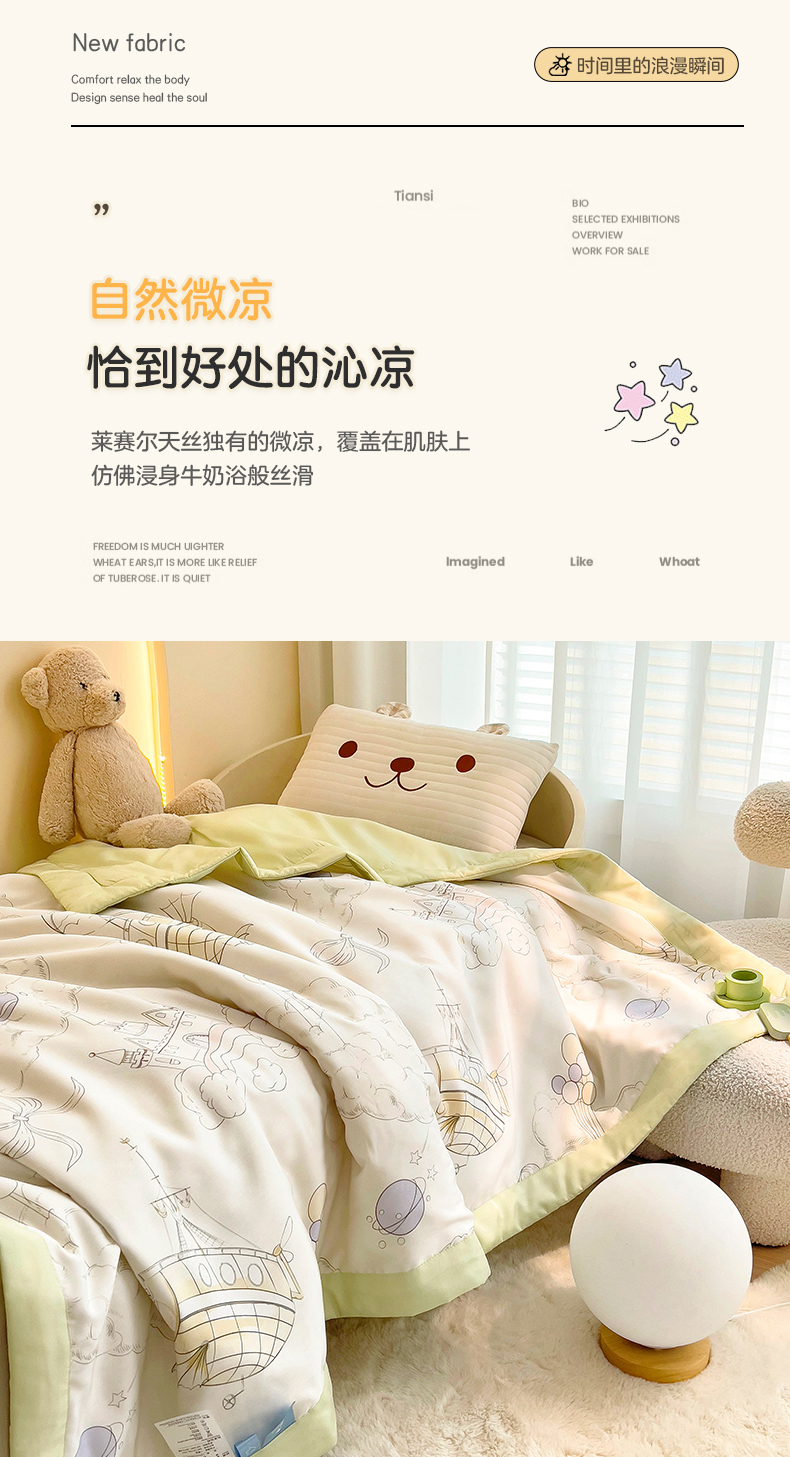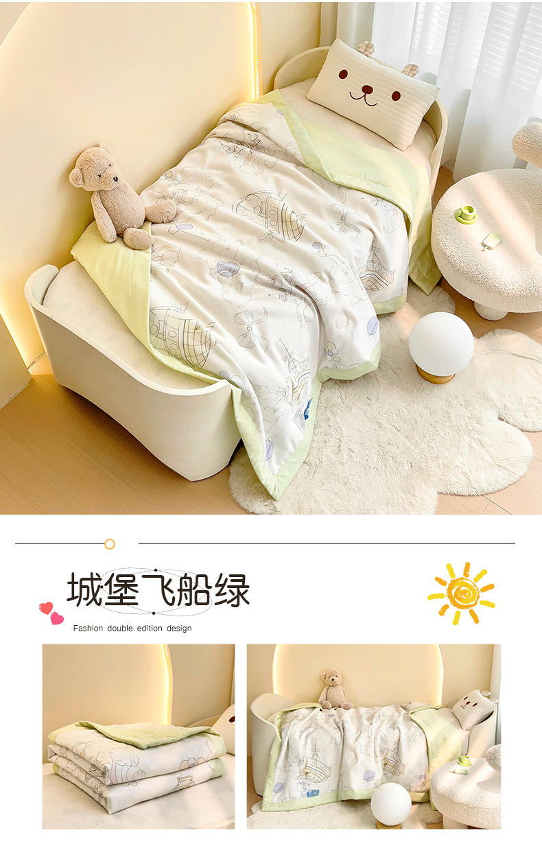商品名称:御棉坊 2025新款A类50天丝数码印花夏被子被芯 城堡飞船绿