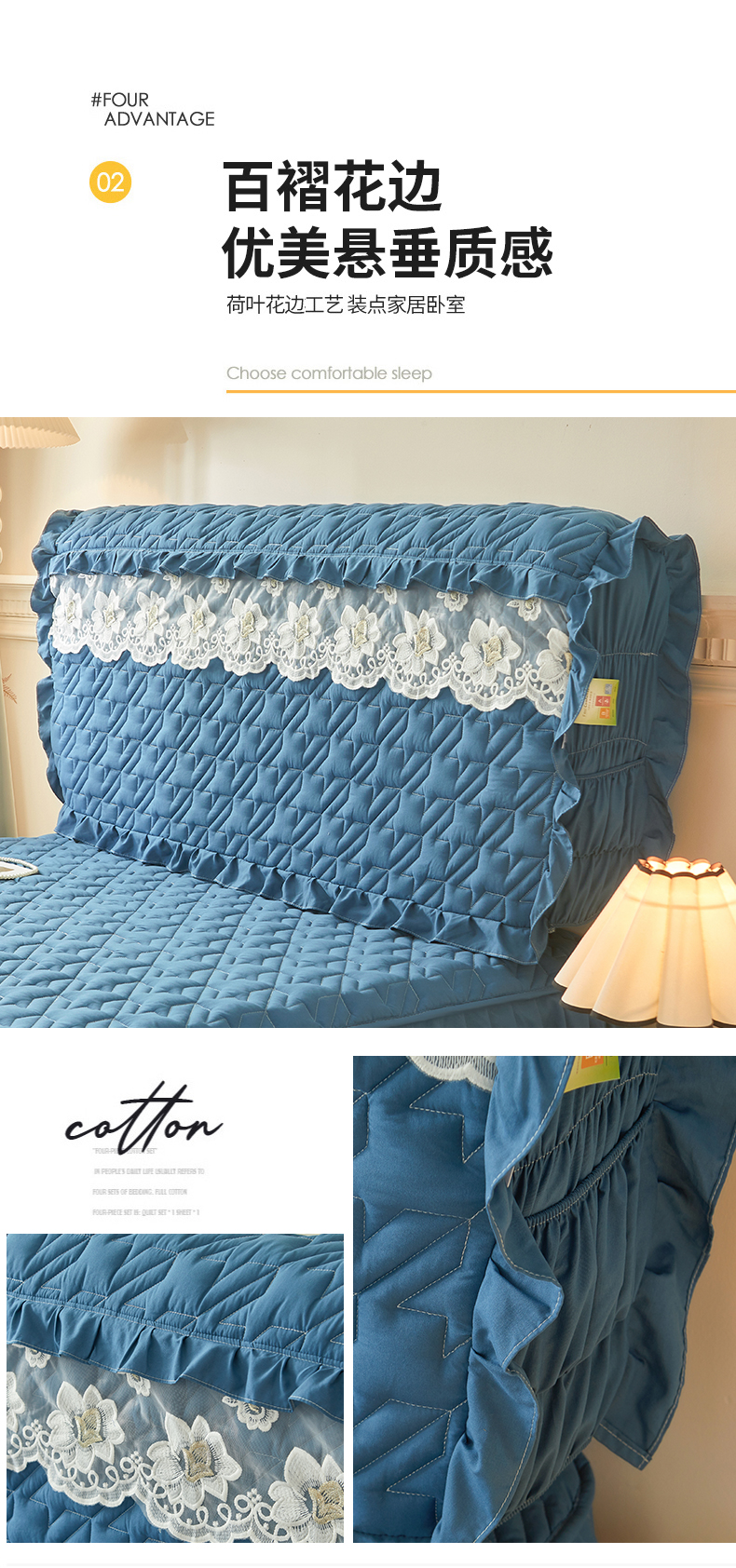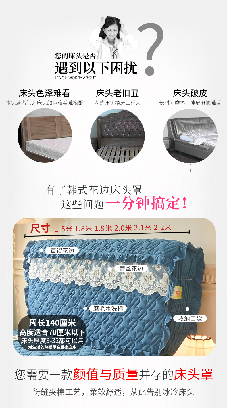 (总)十个点家纺 2025新款千鸟格磨毛绗缝夹棉纯色花边床头罩,经典白色,经典兰色,经典浅灰,经典浅驼,经典深灰,经典玉粉